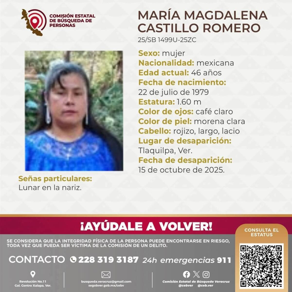 Tlaquilpa, Ver.- La búsqueda de María Magdalena Castillo Romero, de 46 años, terminó de forma trágica el sábado, luego de que su cuerpo fuera localizado en un paraje cercano a su domicilio, en la comunidad de Tlakezaltitla, perteneciente al municipio de Tlaquilpa.