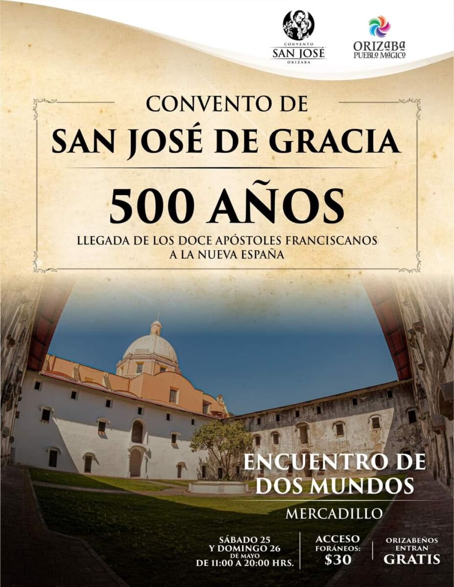 Orizaba, Ver.- Como parte de la conmemoración de los 500 años de la llegada de los 12 franciscanos a la Nueva España, en el exconvento de San José de Gracia de Orizaba se llevará a cabo el Mercadillo “Encuentro de dos mundos” informó Isis Varinia encargada de este lugar.
