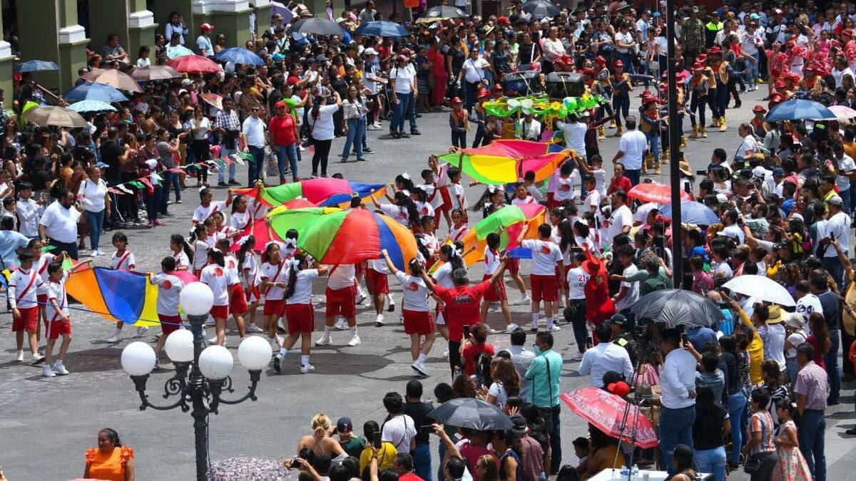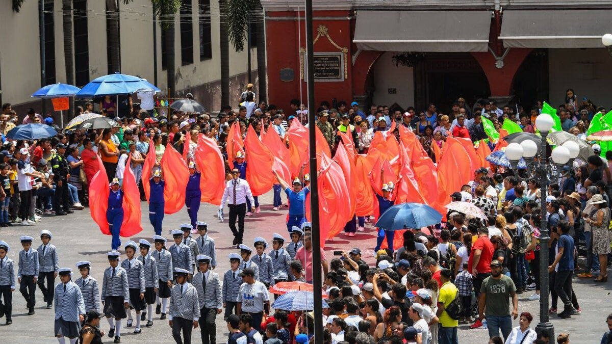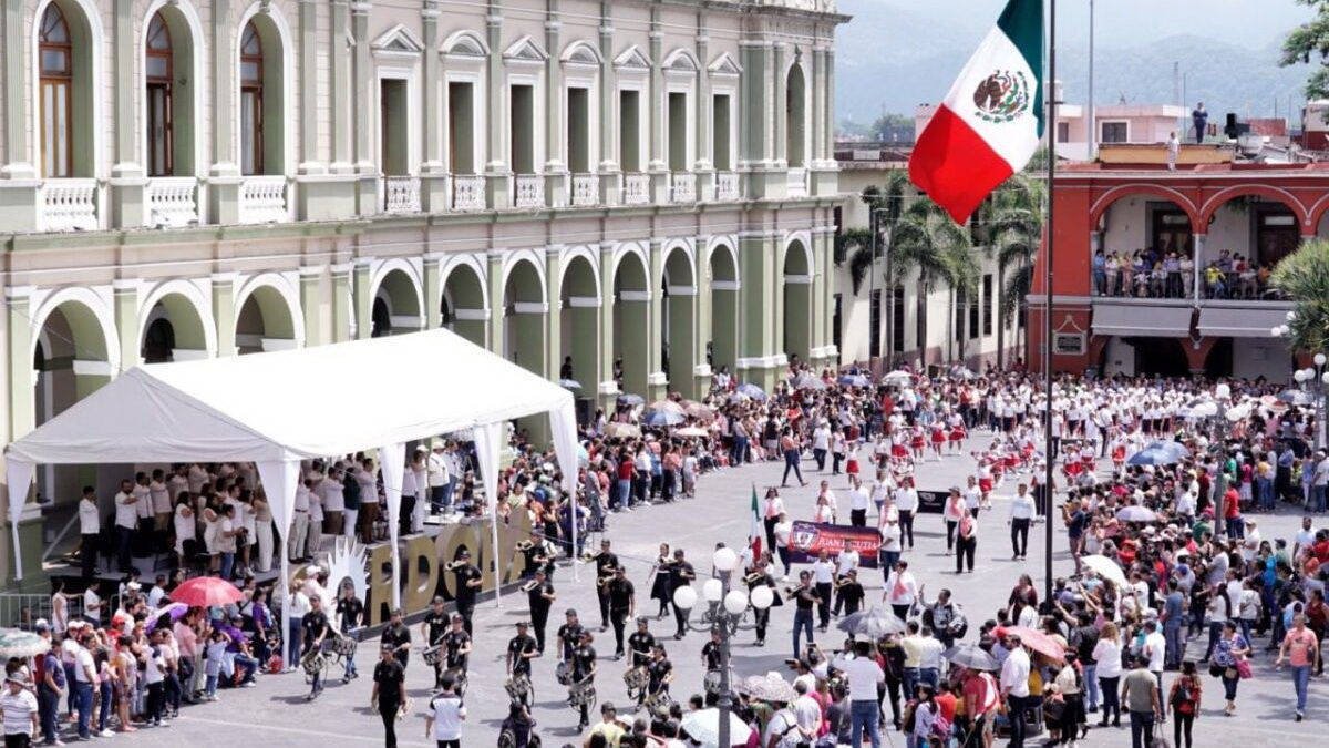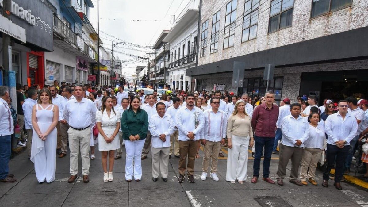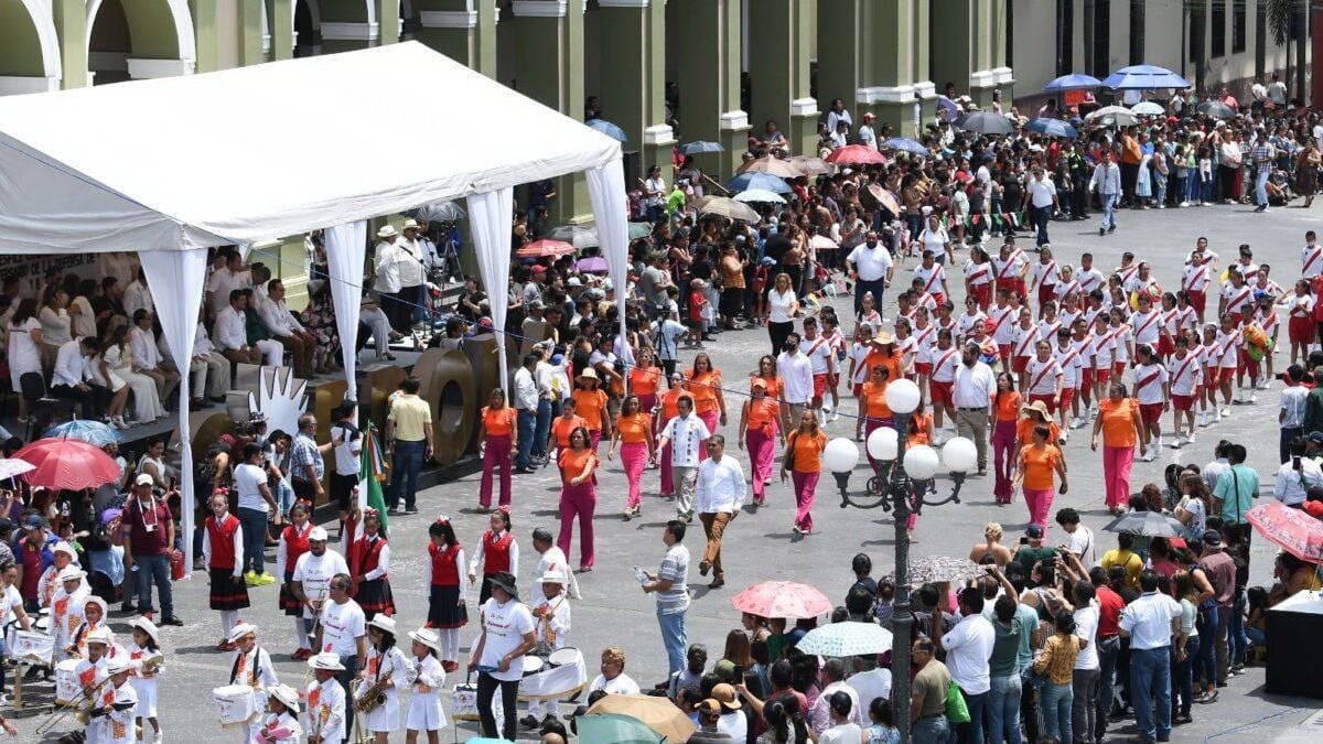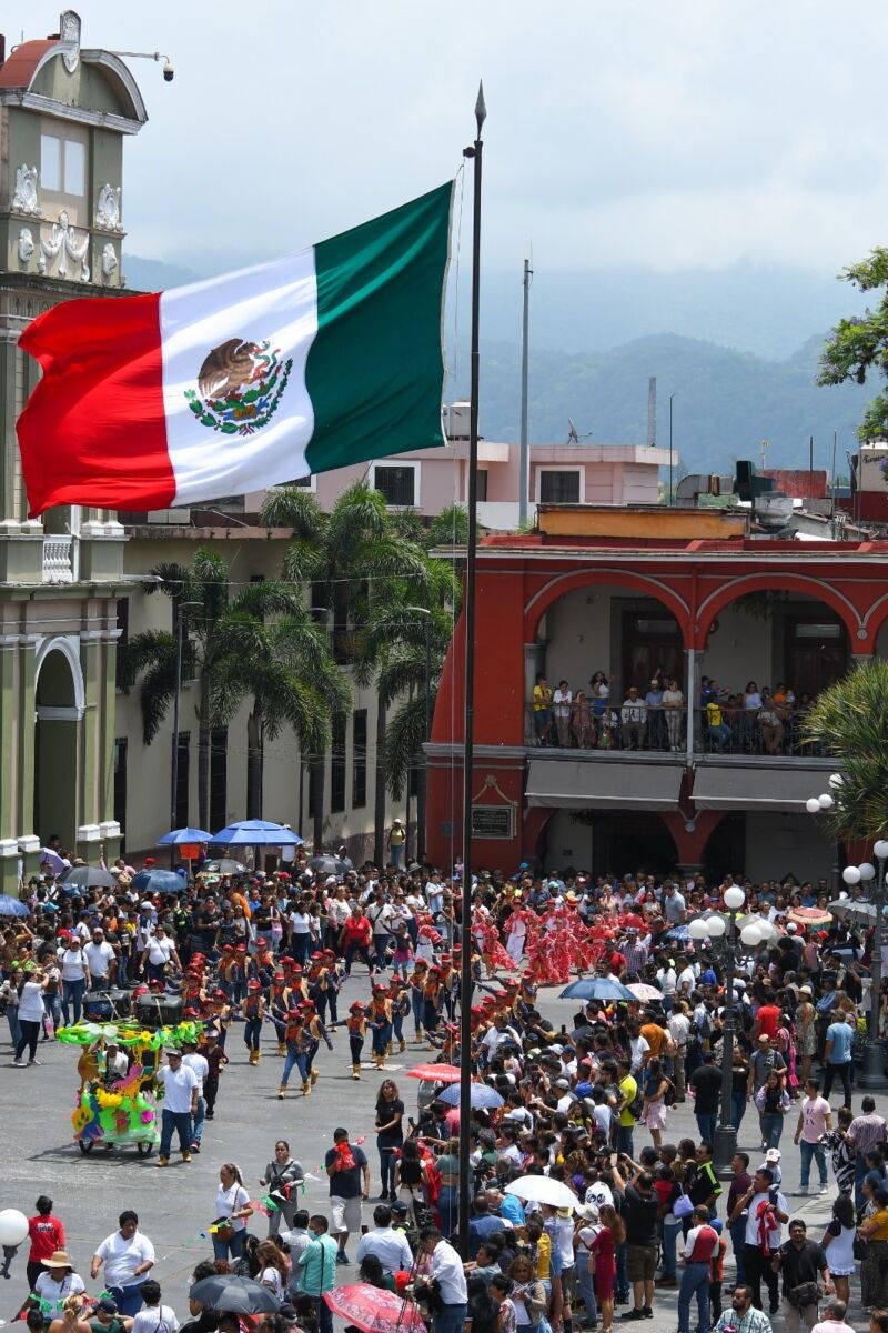 Autoridades e invitados especiales encabezados por el presidente municipal, Juan Martínez Flores, el Secretario de Educación de Veracruz (SEV), Zenyazen Escobar García, y ediles recorrieron las principales calles de la ciudad acompañados de la Banda Municipal de Música, para trasladarse al estrado colocado en la explanada del parque 21 de Mayo.