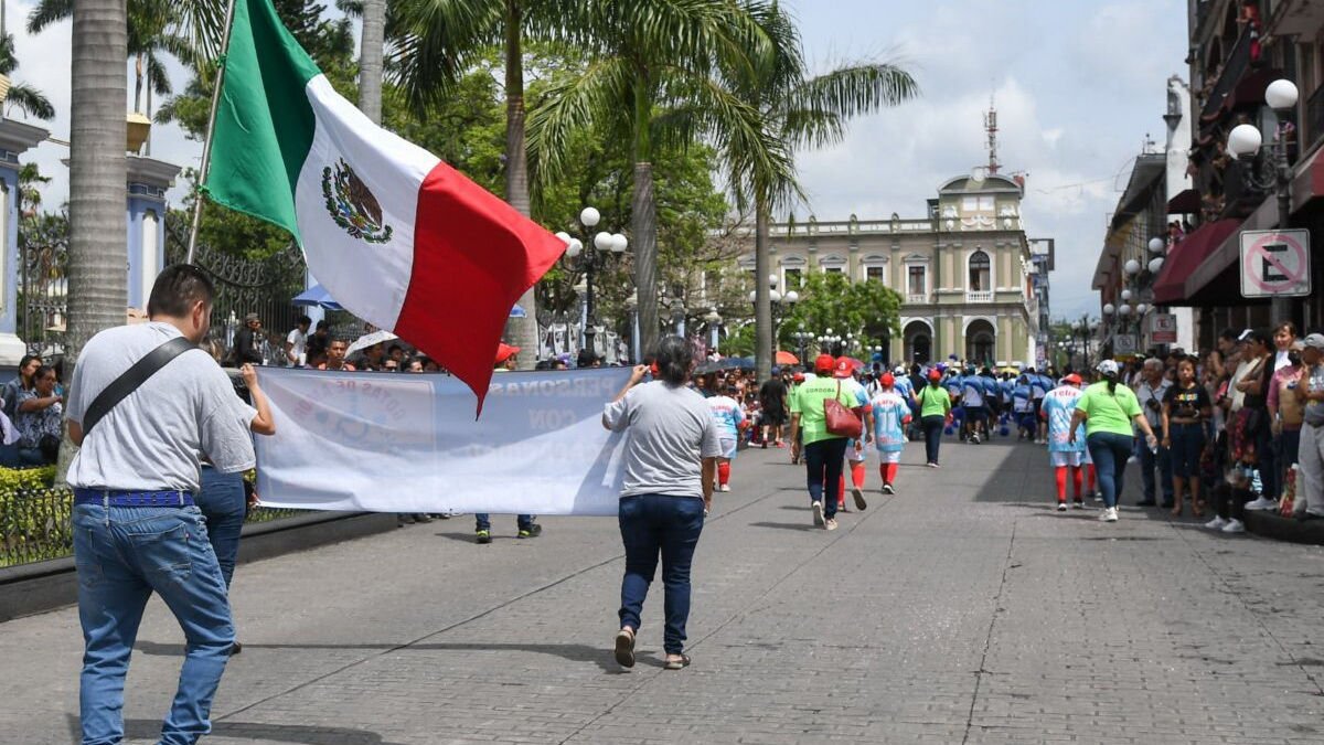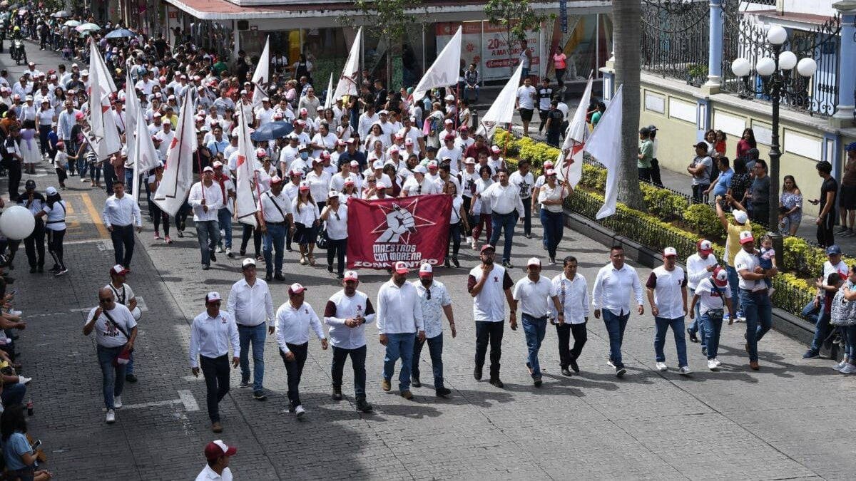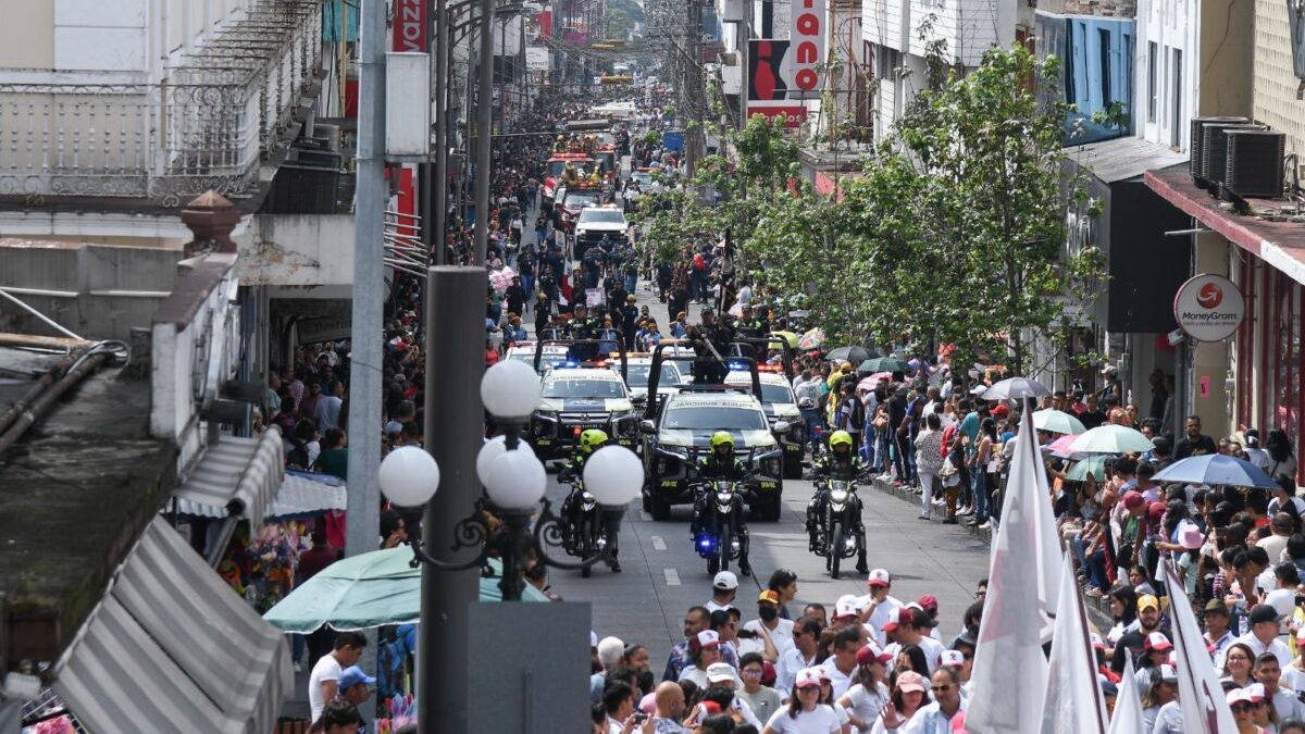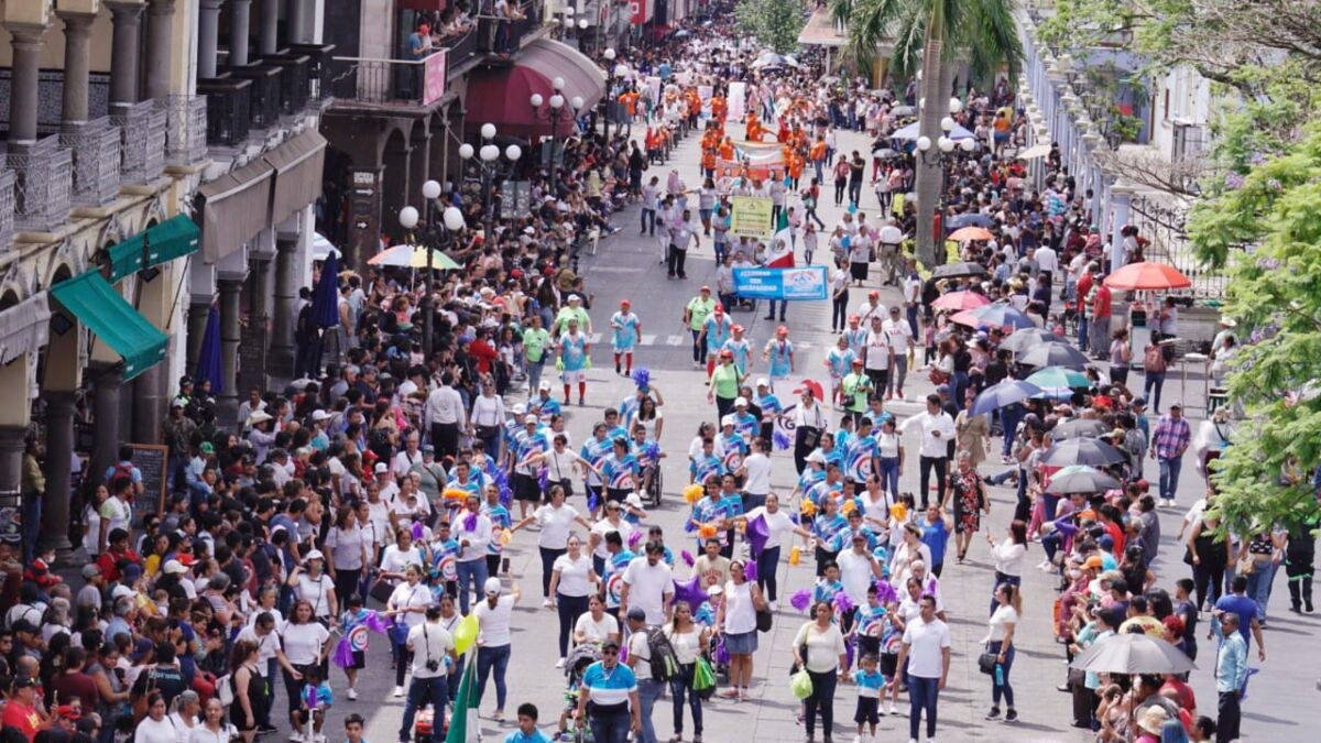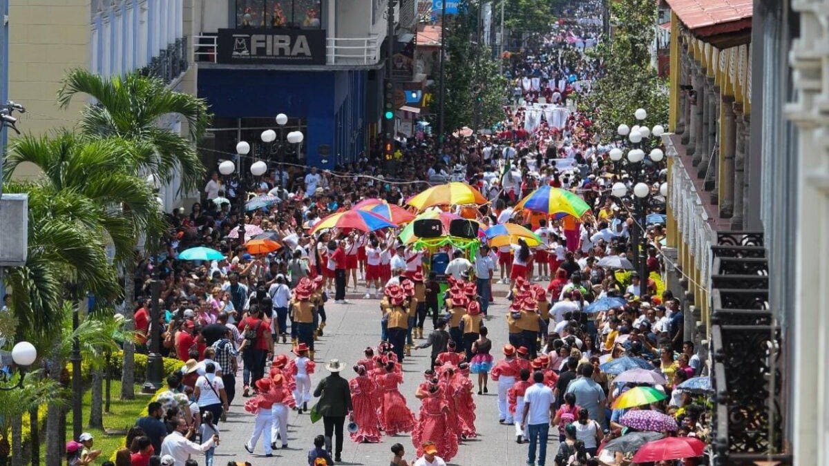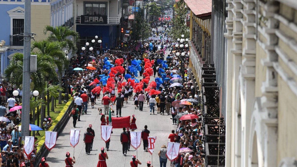 Autoridades e invitados especiales encabezados por el presidente municipal, Juan Martínez Flores, el Secretario de Educación de Veracruz (SEV), Zenyazen Escobar García, y ediles recorrieron las principales calles de la ciudad acompañados de la Banda Municipal de Música, para trasladarse al estrado colocado en la explanada del parque 21 de Mayo.