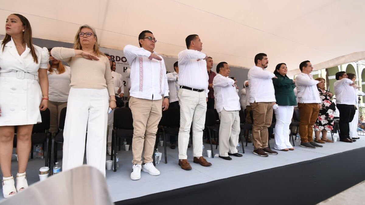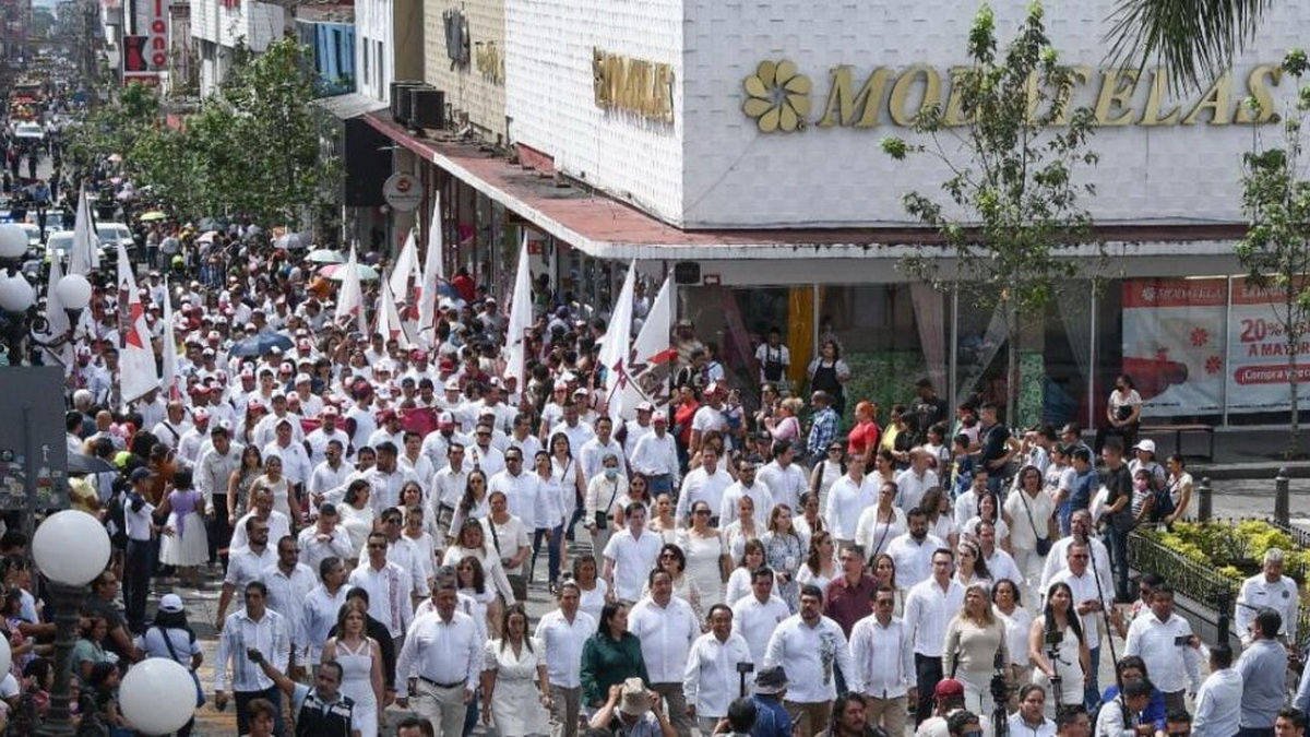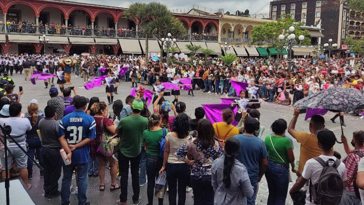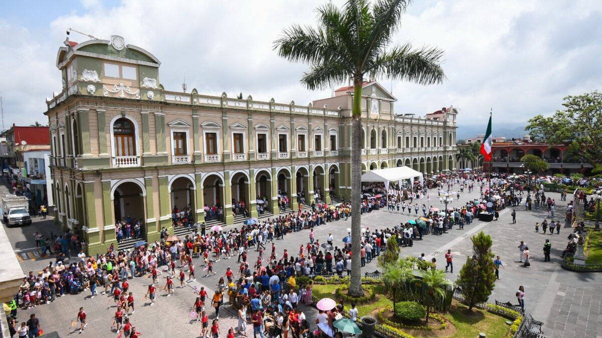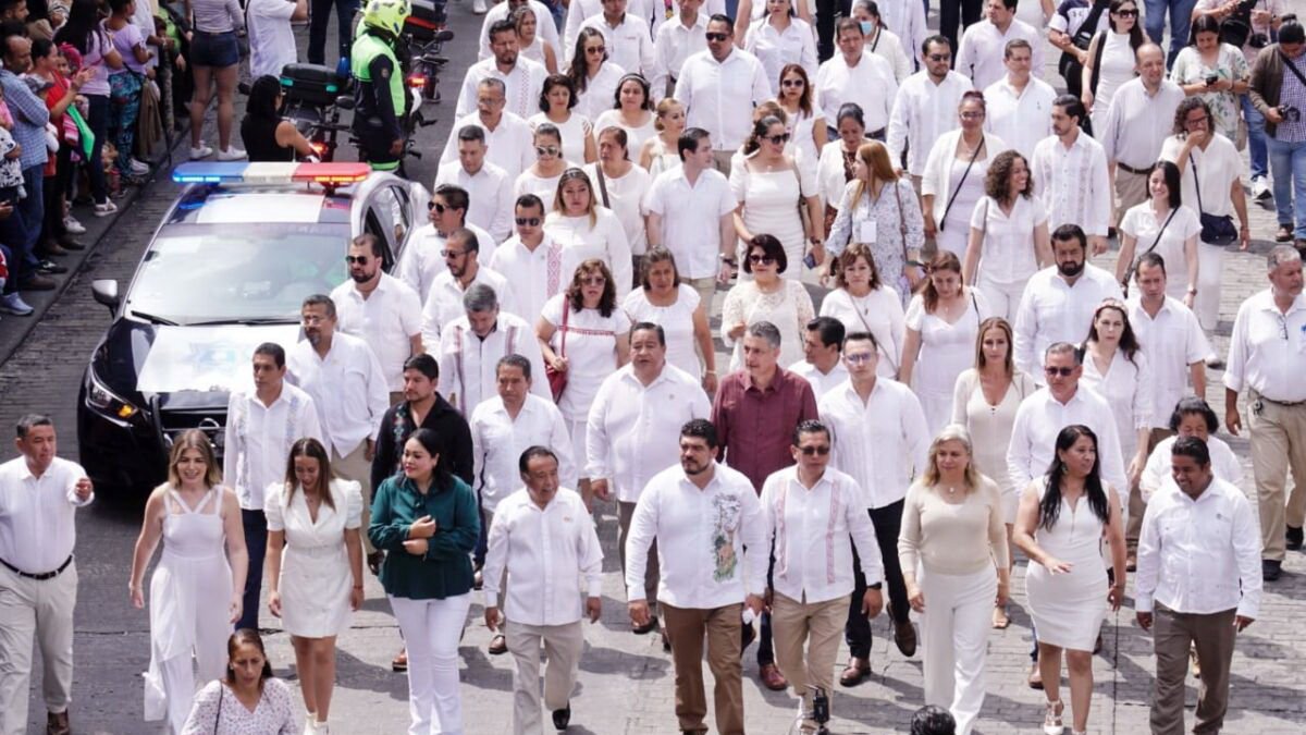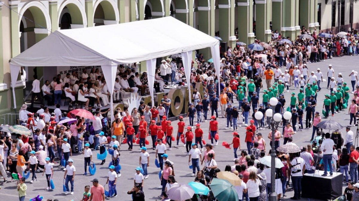Autoridades e invitados especiales encabezados por el presidente municipal, Juan Martínez Flores, el Secretario de Educación de Veracruz (SEV), Zenyazen Escobar García, y ediles recorrieron las principales calles de la ciudad acompañados de la Banda Municipal de Música, para trasladarse al estrado colocado en la explanada del parque 21 de Mayo.
