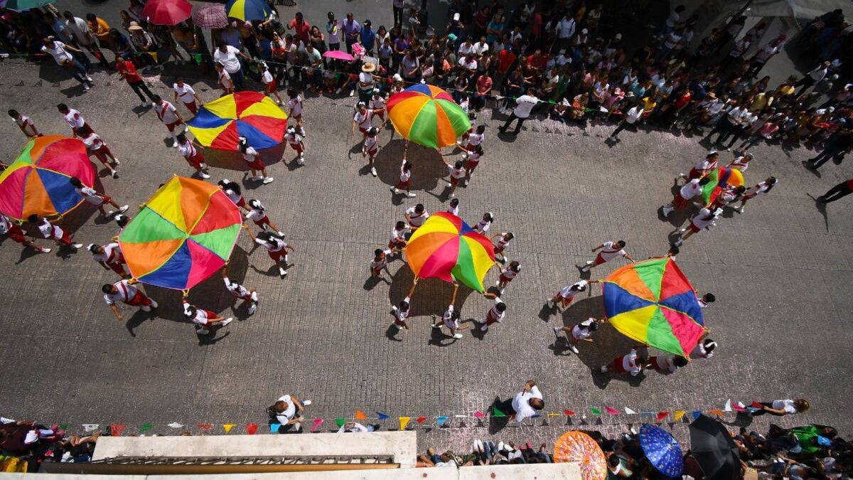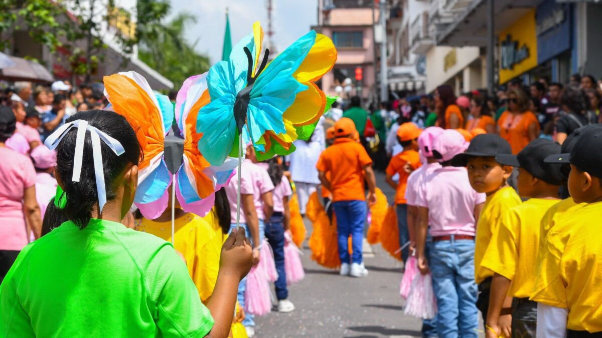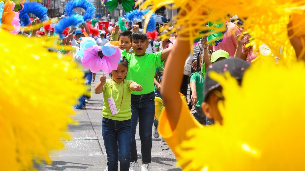 El recorrido inició a partir de las 9:45 horas con estudiantes de diversos planteles de todos los niveles educativos, quienes lucieron trajes coloridos y realizaron diferentes tablas deportivas, baile y música.