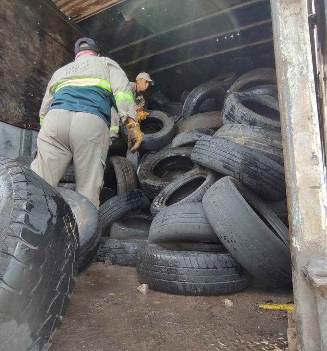 Esta entrega de llantas se realizó frente a los campos deportivos de la liga “30 Caballeros” donde arribó el trailer de la empresa para iniciar con el acopio de los neumáticos, alcanzando su capacidad total. En lo que va de la presente administración se han entregado 40 toneladas de llantas.