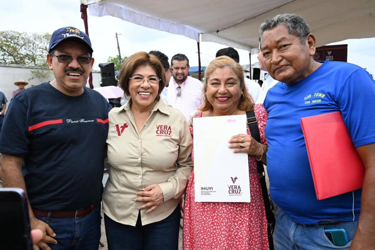 En el marco de sus primeros 100 días de administración, la presidenta municipal de Veracruz, Rosa María Hernández Espejo, encabezó la entrega de 255 escrituras a familias de las colonias Victoria, Paraíso, Lomas de Tarimoya y El Roble, brindándoles certeza jurídica sobre su patrimonio.