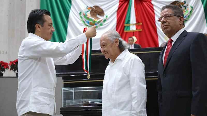 Xalapa, Ver., 03 de diciembre de 2018.- El gobernador Cuitláhuac García Jiménez entregó la Medalla “Adolfo Ruiz Cortines 2018” al ciudadano Juan Hernández Ramírez, quien se ha destacado por sus esfuerzos de preservar las lenguas indígenas de las etnias de Veracruz, mediante el impulso y difusión de la creación literaria.