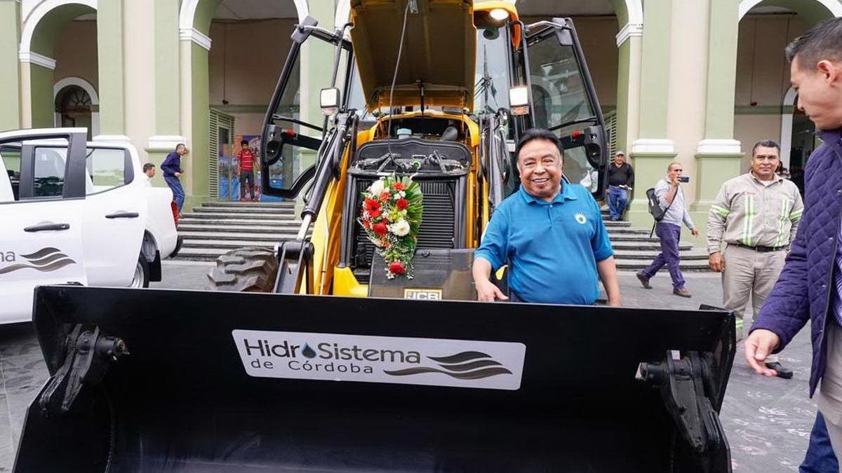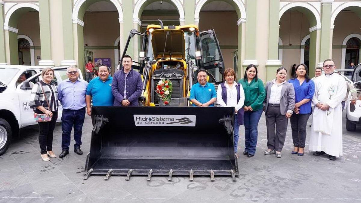 Córdoba, Ver.- Este miércoles, autoridades municipales e integrantes del Cabildo encabezados por el Presidente Municipal, Juan Martínez Flores, y la directora de Hidrosistema, María del Rosario Palafox Aguilera, entregaron cinco vehículos y maquinaria pesada para el uso de los servicios públicos y operación del organismo operador de agua, en beneficio de los usuarios de todas las colonias y comunidades de Córdoba.
