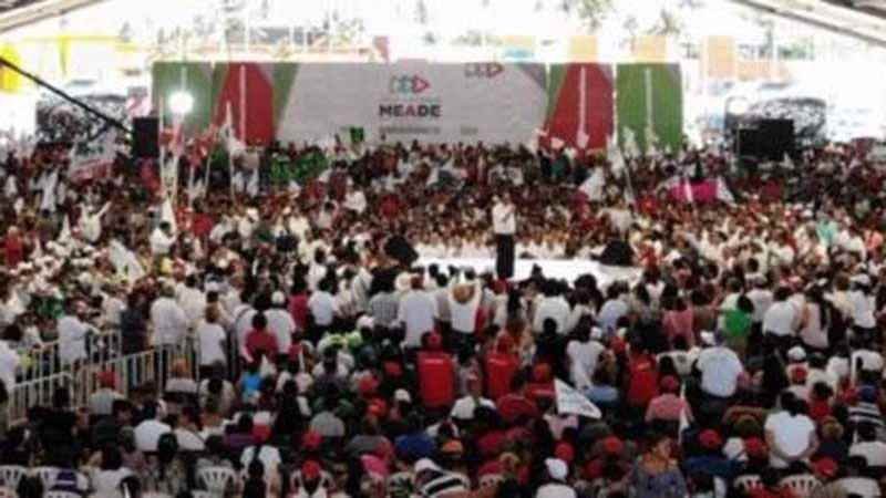 “Salgamos a votar el 1 de julio por nosotros y por nuestro destino. Salgamos a votar el 1 de julio para llevar la decencia, la preparación y el compromiso a la Presidencia de la República. ¡Salgamos a votar por Pepe Meade, Presidente de la República!”, arengó Pepe Yunes.