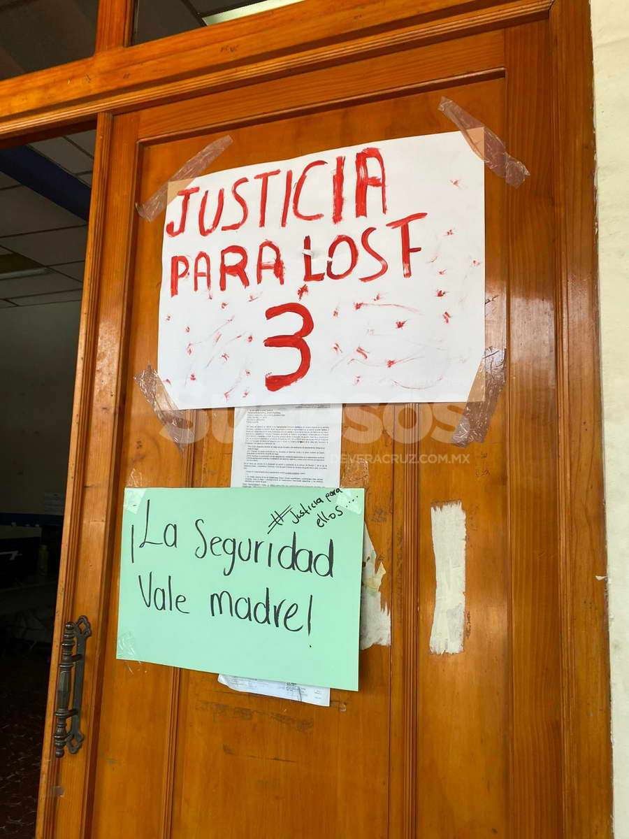 Los inconformes colocaron carteles en los muros de este lugar con exigencia de justicia: “Justicia para los 3”; “Justicia para ellos”; “Ni uno más, exigimos seguridad”; “Velemos juntos por la paz de nuestro pueblo; Fuera autoridades corruptas, Sindica (Sara Ivette Jacinto Vega) y Margarito (Ramírez Brenis, alcalde); Justicia para Aarón Juárez, David Romero y Emanuel Fabian”.