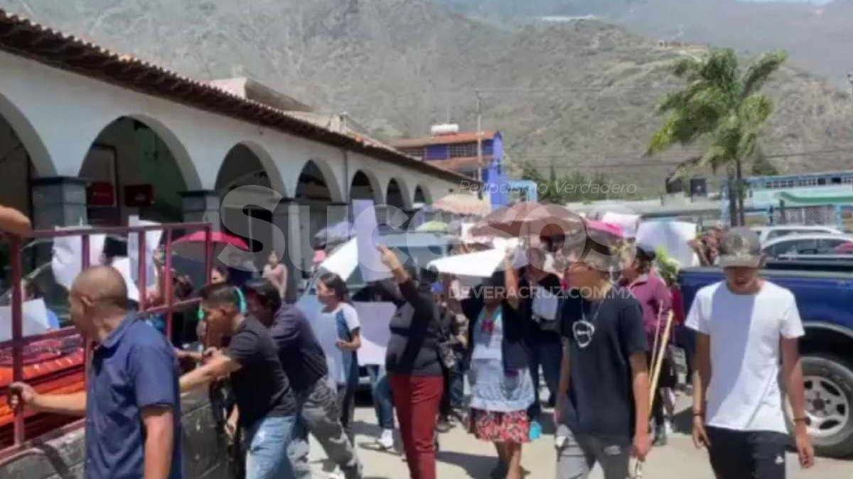 Maltrata, Ver.- Habitantes del municipio de Maltrata se manifiestan en el Palacio Municipal, en demanda de justicia y que haya mayor seguridad en el municipio luego de que tres jóvenes originarios de este municipio fueran asesinados la madrugada del domingo a escasos 50 metros de este lugar.