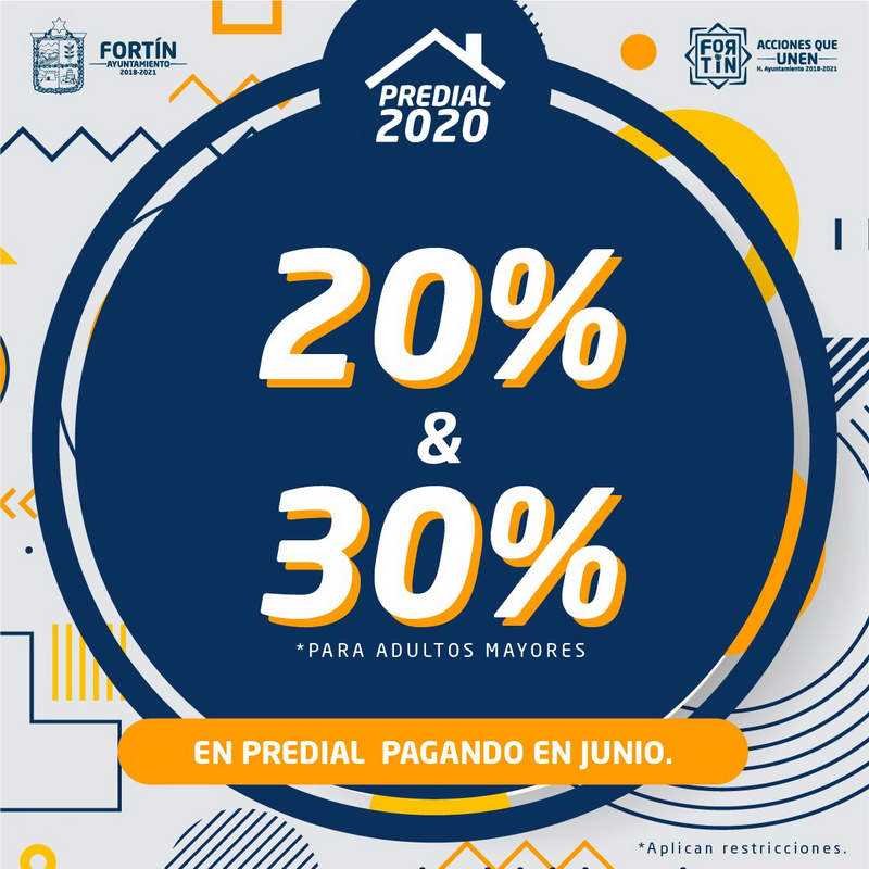 Durante el mes de junio este impuesto tendrá un 20% de descuento a la población en general y 35% para adultos mayores, como anteriormente se venía haciendo y cumpliendo con los requisitos necesarios aprobados por el cabildo, esto como apoyo a la economía de la población ante la situación actual, además de que se mantiene el 100% de descuento en recargos por atrasos en el pago del servicio de agua para quienes vayan al corriente durante el periodo que dure la contingencia.