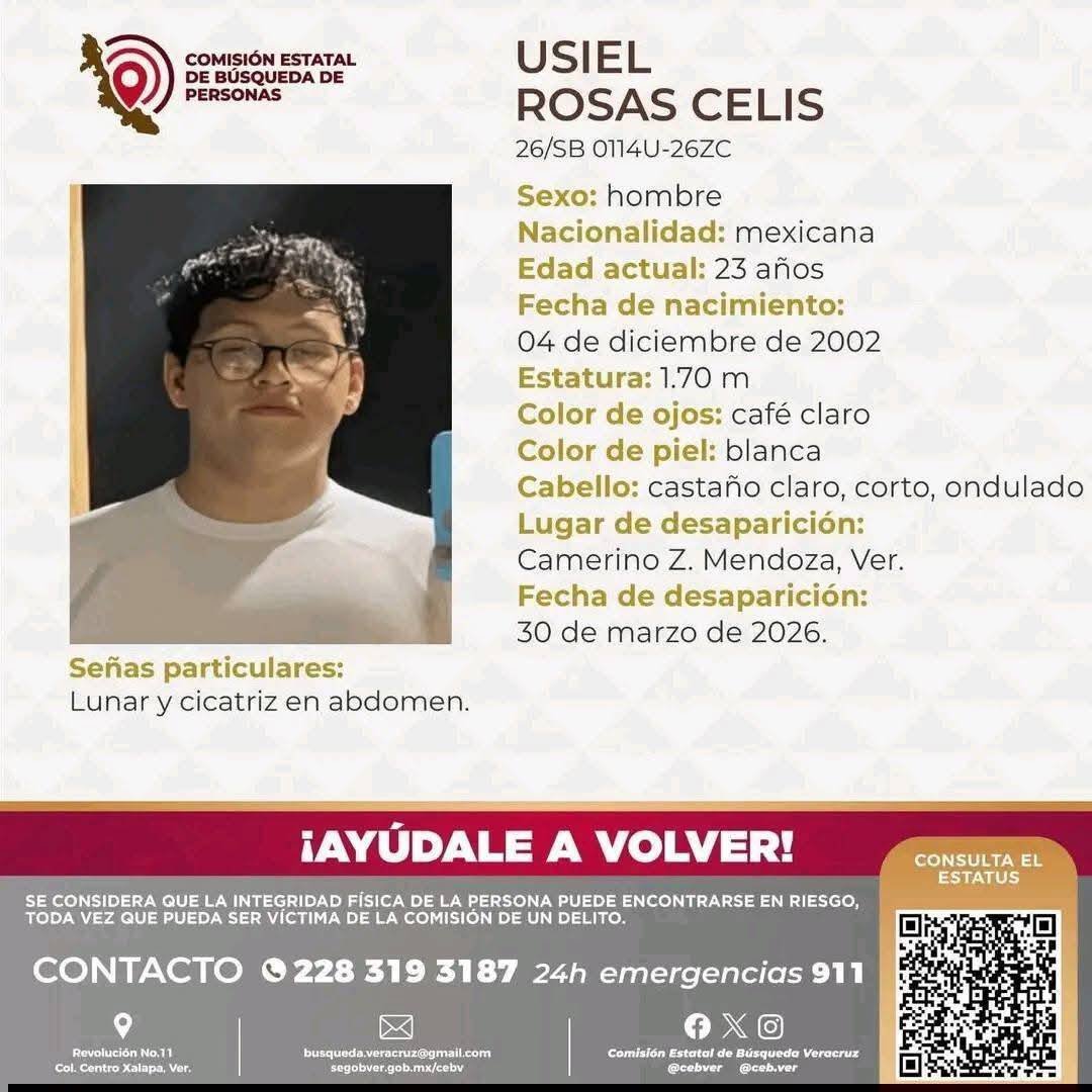 Hasta la mañana de este miércoles no se han reportado avances en la investigación ni contacto alguno con la familia, lo que incrementa la incertidumbre. Ante ello, reiteraron el llamado a la ciudadanía para aportar cualquier información que contribuya a su localización, comunicándose a los números 228 319 3187 o al 911. La familia insiste en que cualquier dato puede ser clave para encontrarlo, mientras el caso mantiene en alerta a la región.