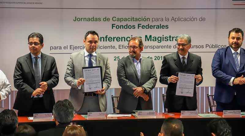 La firma del acuerdo se realizó en el marco de las jornadas de capacitación para la aplicación de fondos federales, donde asistieron servidores públicos de distintas dependencias del Gobierno del Estado.