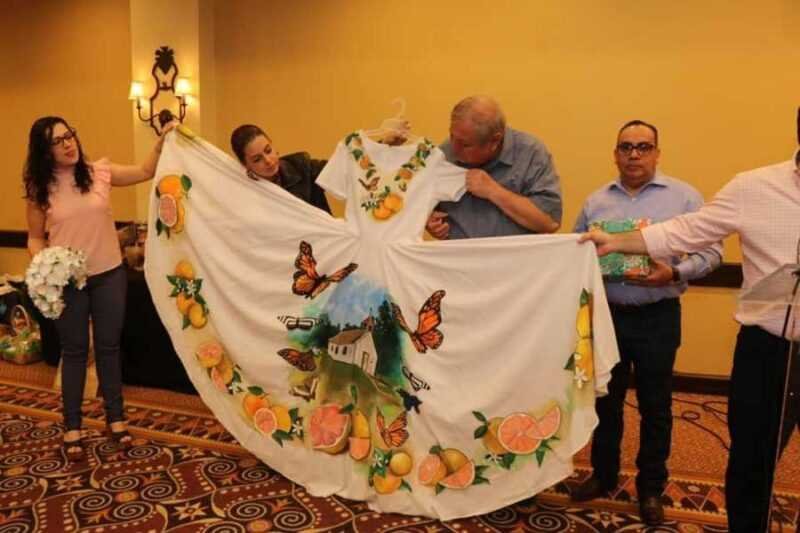 Asimismo el alcalde fortinense entregó a sus anfitriones artesanías hechas por manos fortinenses, destacando un vestido artesanal diseñado, confeccionado y pintado a mano por mujeres fortinenses, tomando como inspiración el traje típico de Fortín, con el color blanco de la gardenia y motivos alusivos de Mission como la Capilla de “La Lomita”, la cual tiene un gran valor histórico, religioso y cultural, de igual forma se incluyeron mariposas en representación del mariposario, atractivo turístico para los visitantes de esta ciudad y frescas toronjas, distintivo de la reconocida industria cítrica de Mission.