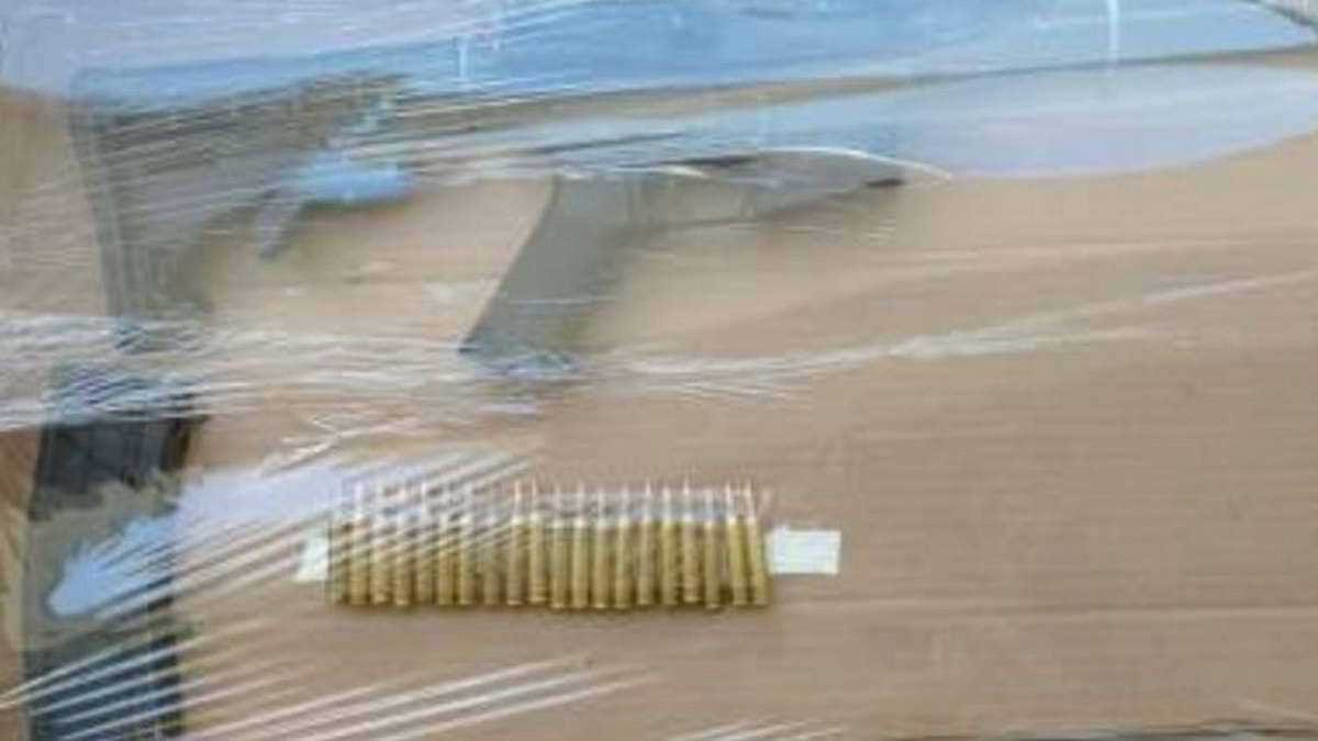 En la inspección preventiva de acuerdo al protocolo de actuación policial, le hallaron en sus pertenencias un arma de fuego larga, cargador, cartuchos útiles y percutidos, sobres de diversos narcóticos, cartulinas con mensajes alusivos a la delincuencia organizada y una camioneta Toyota Tacoma, placas RY09872, con reporte de robo.
