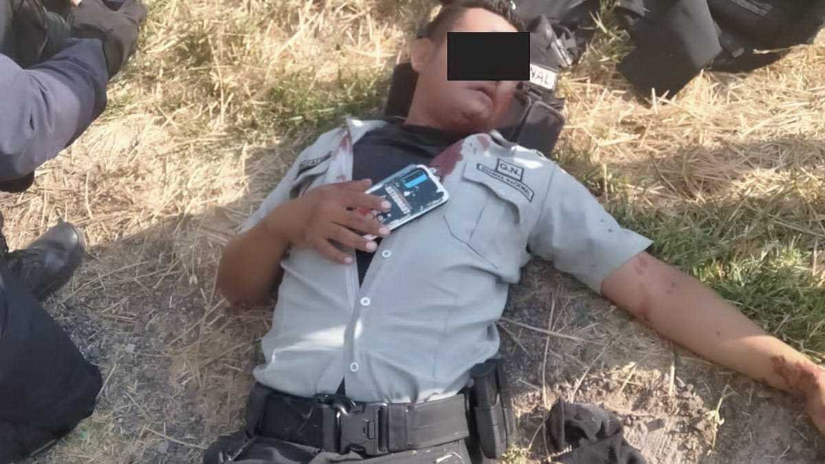 Elementos de la Guardia Nacional División Operaciones Especiales arribaron en ayuda de los agentes de la División Caminos, quiénes presentan diversas lesiones por esquirlas de los proyectiles percutidos de arma de fuego.