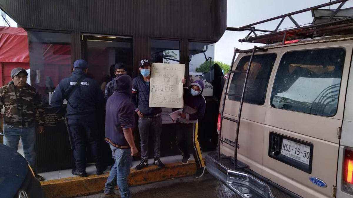 Fue en punto de las 16:30 horas que un aproximado de 100 personas arribaron a la caseta para manifestarse portando cartulinas, dónde piden que gobierno del estado y a la fiscal general los apoyen, para localizar a Cesáreo Morales López de 27 años y Ángel García Bravo de 32 años.
