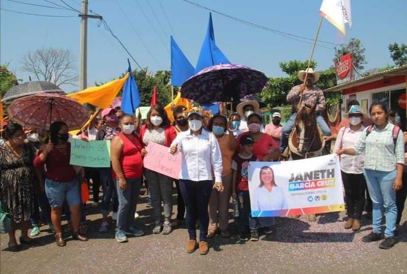 Córdoba, Ver.- Janeth García Cruz, abanderada de la alianza PAN, PRI, PRD, a la diputación federal por el distrito 16, dijo que su compromiso con los habitantes de esta congregación es gestionar pavimentaciones de calles, drenaje sanitario, apoyos a la vivienda y apoyos a adultos mayores, dado que son sus principales necesidades.