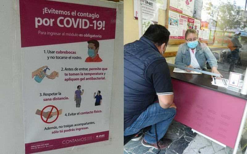 Expuso que derivado de la emergencia sanitaria que se vive en México a causa de la pandemia por COVID-19, el INE implementó una serie de protocolos para garantizar la salud tanto de los funcionarios como de todas las personas que asistan a los módulos, por lo que quienes acudan deberán permitir la toma de temperatura al ingreso a los locales, colocarse gel sanitizante, portar en todo momento cubrebocas y mantener sana distancia, acudir sin acompañantes para evitar la concentración de multitudes, con excepción de quienes requieran algún tipo de asistencia.