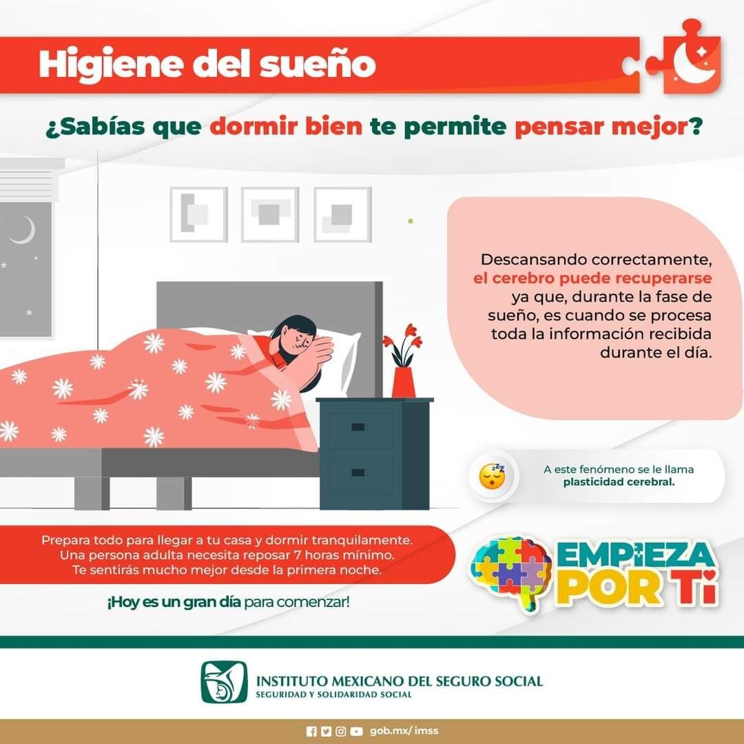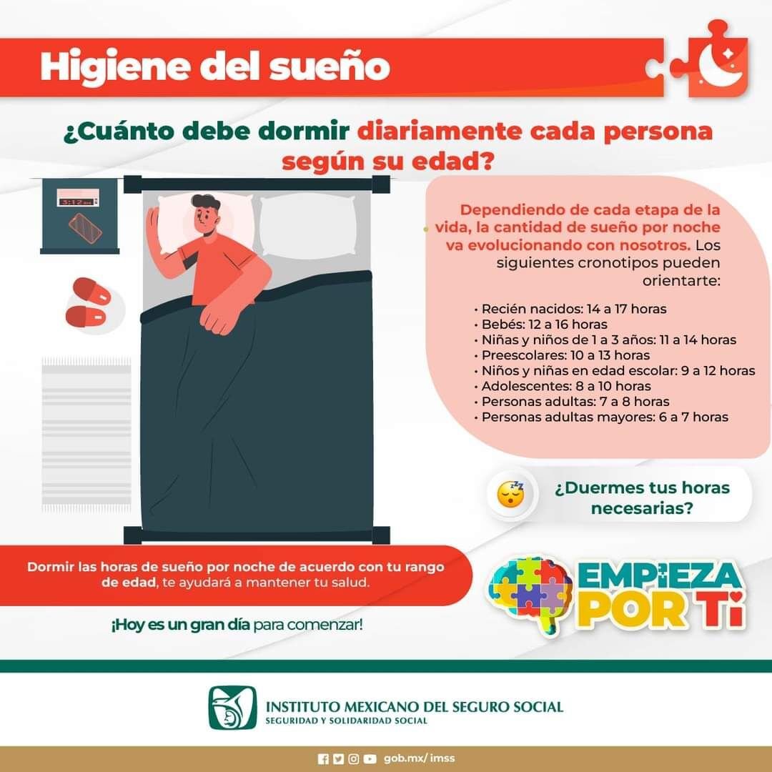 El Instituto Mexicano del Seguro Social (IMSS) en Veracruz Sur exhorta a la población en general a mantener hábitos de sueño saludables y con ello reducir problemas en el sistema nervioso, endocrino e inmunológico.
