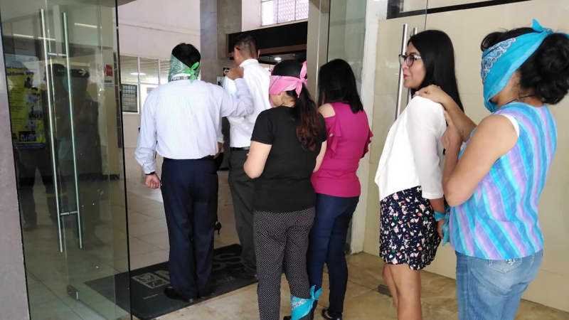 Como parte del taller y con el propósito de que, al menos por algunos momentos, los participantes experimentaran lo que viven día con día las personas que presentan alguna discapacidad visual, auditiva y motriz, realizaron un ejercicio en que les fueron cubierto los ojos, sujetado alguna extremidad, cubrirse los oídos, de forma que sus capacidad habituales fueron disminuidas y se enfrentaron a situaciones de comunicación, desplazamiento por lugares nuevoS, para favorecer la empatía con derechohabientes que acudan a sus servicios y apliquen estrategias para ofrecerles la atención de la mejor manera.