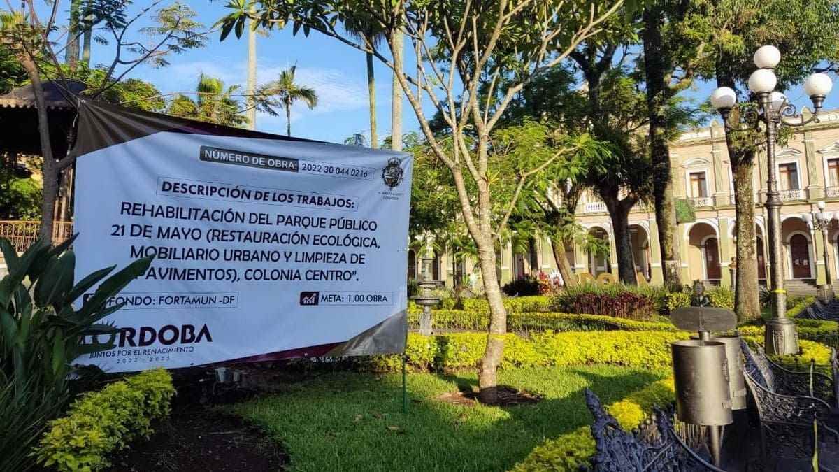 Córdoba, Ver.- La Dirección de Obra Pública e Infraestructura Municipal inició con la rehabilitación del parque 21 de Mayo, la cual consiste en la restauración ecológica, mobiliario urbano y limpieza de pavimentos, esto en respuesta a la petición del sector comercial para que haya un impacto turístico en la ciudad.