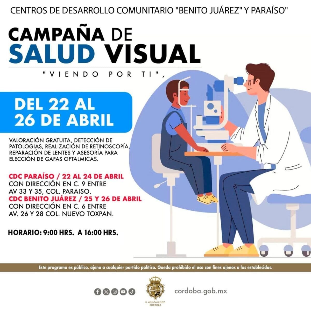 H. Córdoba, Ver., 20 de abril de 2024. – Este lunes 22 de abril en los centros comunitarios “Benito Juárez” y “Paraíso” en Córdoba inicia el servicio de detección de patologías de la vista para el público en general; las actividades concluirán el día 26.