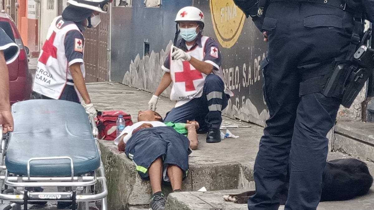 Paramédicos de Cruz Roja se presentaron a la avenida 6 y calle 5, lugar donde el joven cayó sobre la banqueta y le dieron los primeros auxilios.