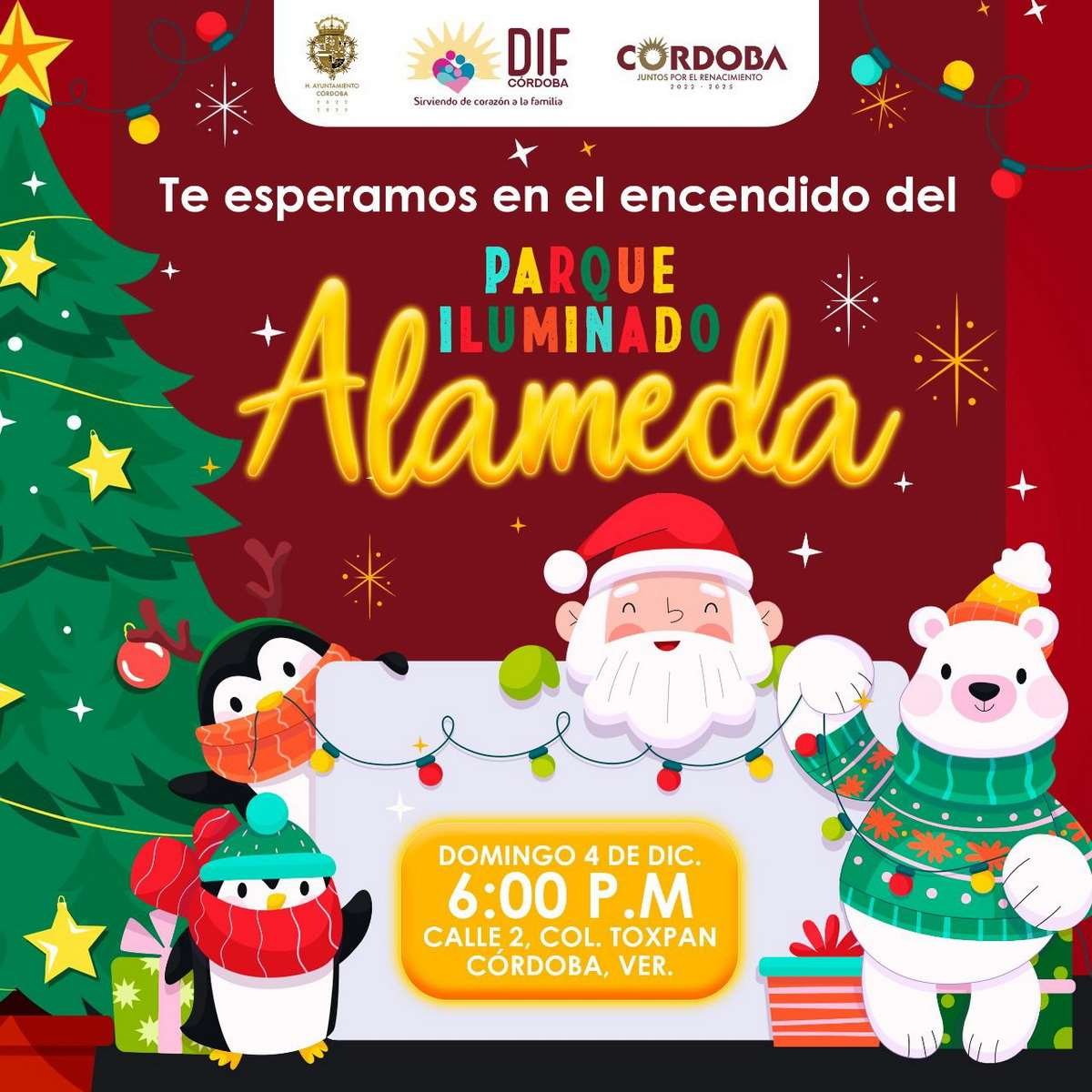 Para el domingo 4 de diciembre y como parte de la cartelera de “El Renacimiento de la Navidad en Córdoba”, se hará el encendido del Parque Iluminado Alameda a las 18:00 horas.