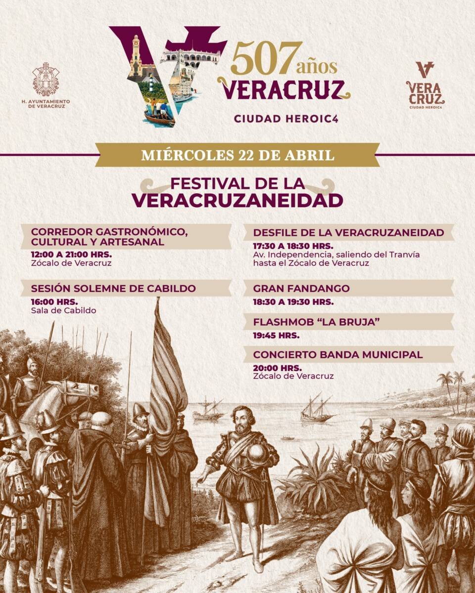 El Ayuntamiento de Veracruz invita a la ciudadanía a participar en el Gran Desfile de la Veracruzaneidad este miércoles 22 de abril a las 17:30 horas, para conmemorar 507 años de historia y fortalecer el orgullo y la identidad que distinguen a las y los veracruzanos.