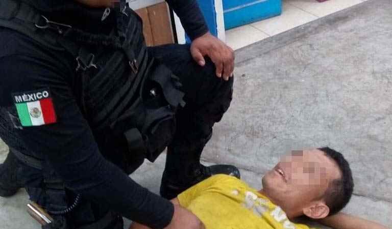 Al ser informados los policías que resguardan ese cuadrante, se dirigieron para abordar al individuo quien respondió de manera agresiva y violenta contra los uniformados; en consecuencia se vieron en la necesidad intervenirlo y ponerlo a disposición de la autoridad competente, quien determinará su situación legal.