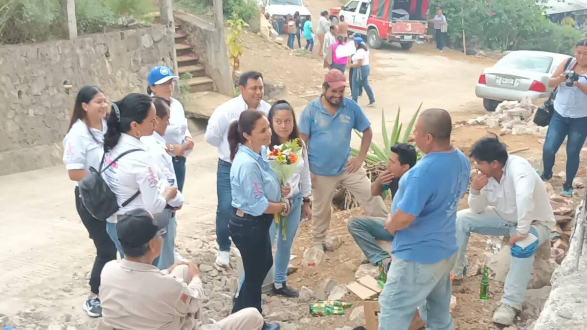 Luego de convivir con trabajadores de la construcción, la candidata acompañada del síndico, Regulo Maguin Lopez y los candidatos a regidurías, Diana Zureima Vidal Martinez y Francisco Javier Mendez Galán, acudieron a la comunidad de Ixcapantla a recorrer las calles y saludar de mano a los habitantes