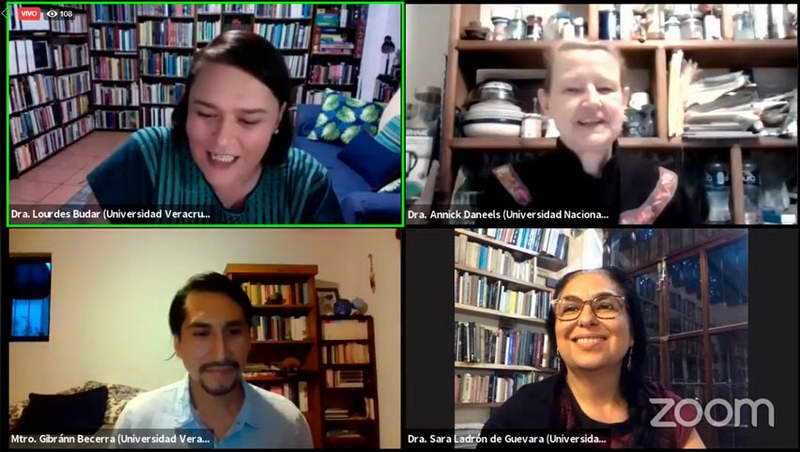La sesión tuvo lugar la tarde del jueves 6 deagosto,a través de la plataforma digitalZoom, con la participación de la rectora Sara Ladrón de Guevara;AnnickDaneels, académica de la Universidad Nacional Autónoma de México (UNAM);GibránnBecerra,académico de la UV, y LourdesBudarJiménez, directora de la Universidad Veracruzana Intercultural (UVI).