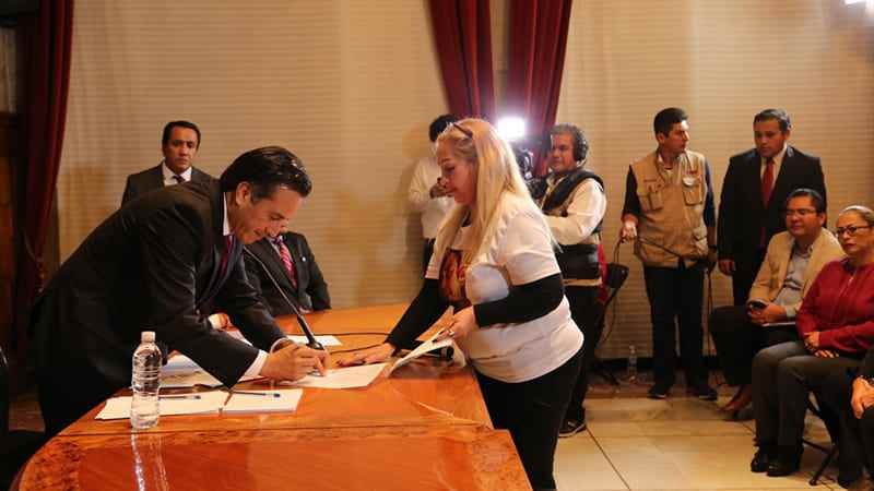 Xalapa, Ver.-Durante la sexta reunión con colectivos de familiares de personas desaparecidas y como parte de su primera acción como gobernador, Cuitláhuac García Jiménez firmó el compromiso para impulsar y garantizar los derechos de todas las personas, principalmente los derechos a la verdad y a la justicia, a través de la Declaratoria de Programa Emergente por Crisis de violaciones graves de derechos humanos.
