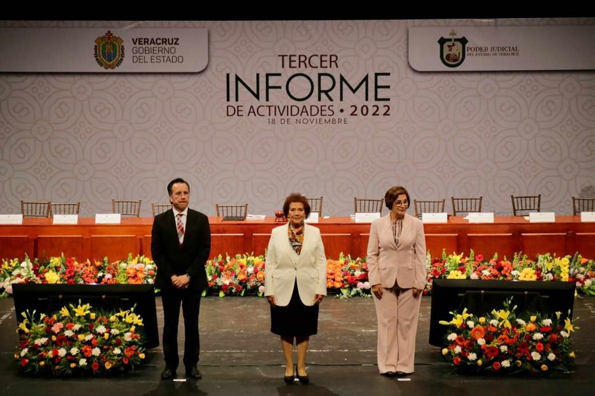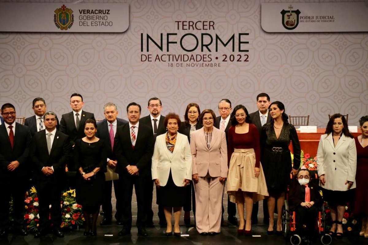 Mago Corro asistió, junto con el gobernador Cuitláhuac García Jiménez, el diputado local Juan Javier Gómez Cazarín, presidente de la JUCOPO, y legisladores de Morena, al Tercer Informe de actividades de la magistrada presidenta del Tribunal Superior de Justicia y del Consejo de la Judicatura del Estado, Isabel Inés Romero, quien, además, procederá a su retiro tras 50 años de servicio en este Poder.