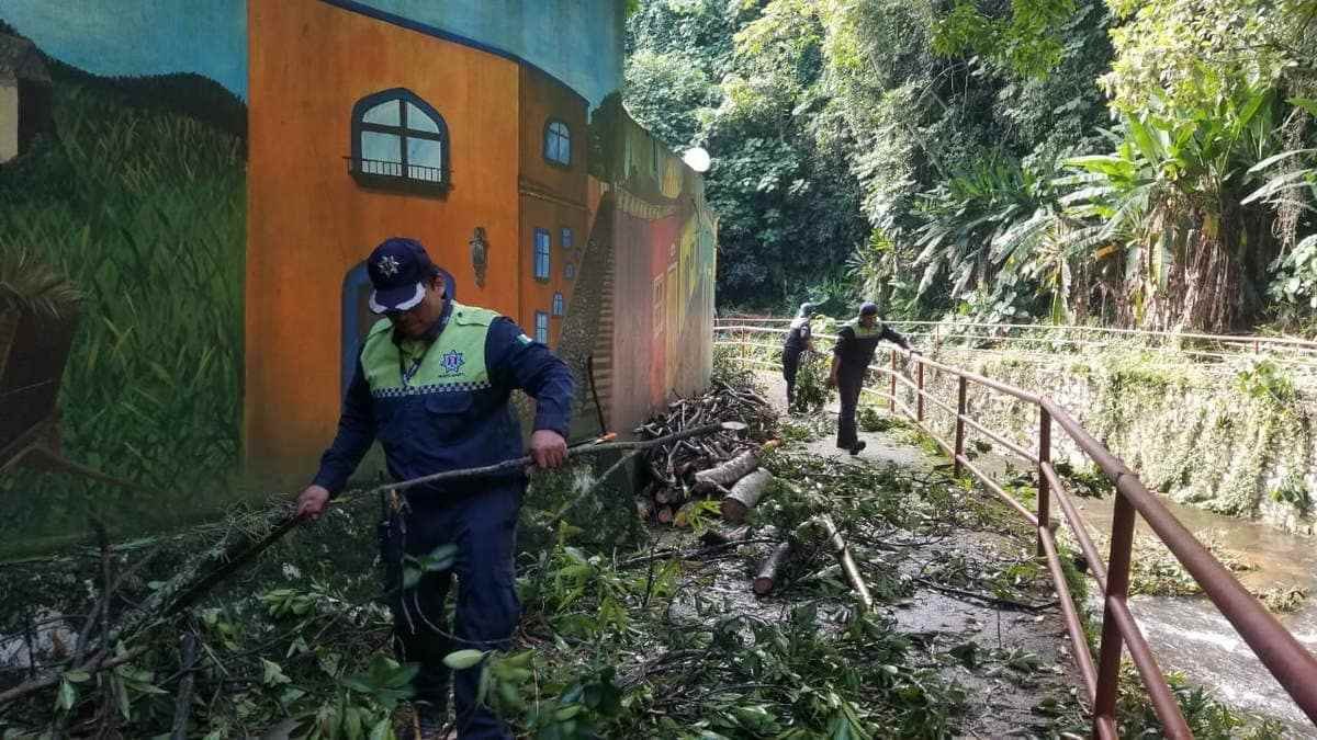 “El árbol se desgajó porque estaba en una ladera, este día estamos liberando el cauce del río, ya que nos preocupaba que el mismo árbol hiciera una represa, y el agua al jalar el tronco afectara la estructura del puente de la calle 10”, dijo el coordinador de la Unidad Municipal de Protección Civil, Jorge Tress Martínez.