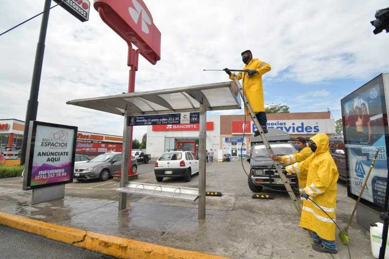 Las direcciones de Servicios Municipales y Tránsito y Seguridad Vial coordinaron acciones de limpieza y sanitización en paradas de autobuses, banquetas y superficies en viales principales de la ciudad con el objetivo de procurar la salud de las familias cordobesas.