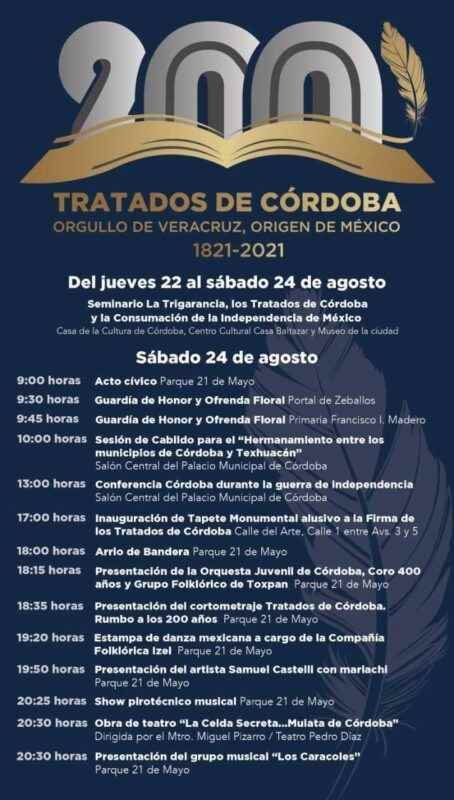 Con el tema Orgullo de Veracruz, Origen de México, se desarrollarán las actividades para conmemorar este hecho histórico que representa el fin de la Guerra de Independencia de nuestro país y el inicio de su vida como Nación soberana.