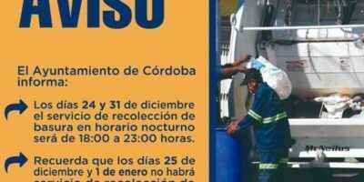 Por Navidad y Año Nuevo suspenden servicio de recolección de basura 24 y 31 de diciembre el servicio solo se ofrecerá hasta las 18:00 horas Córdoba, Ver.- La ... José de Jesús Algarín Durán23 de diciembre del 2019 Local