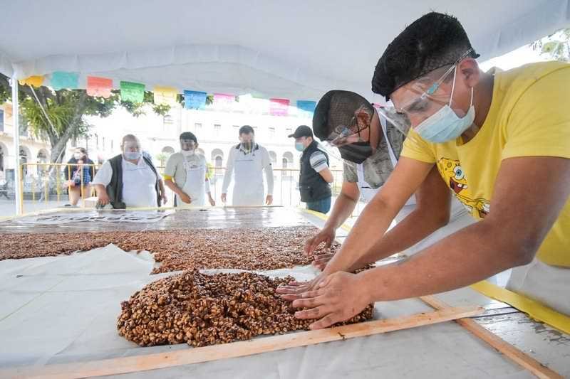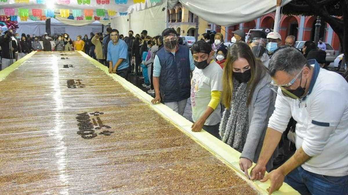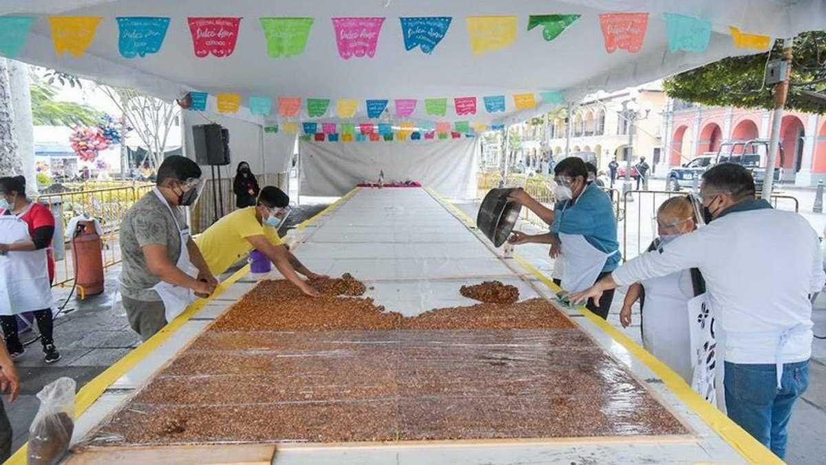 Córdoba, Ver., (13 febrero de 2022) Artesanos de Córdoba rompieron su propio récord, elaborando la palenqueta más grande de México trabajando por siete horas seguidas, logrando una extensión de 15.16 metros de largo y 2 metros de ancho, con sabor y aroma a café, esto en honor al producto emblemático de la ciudad.