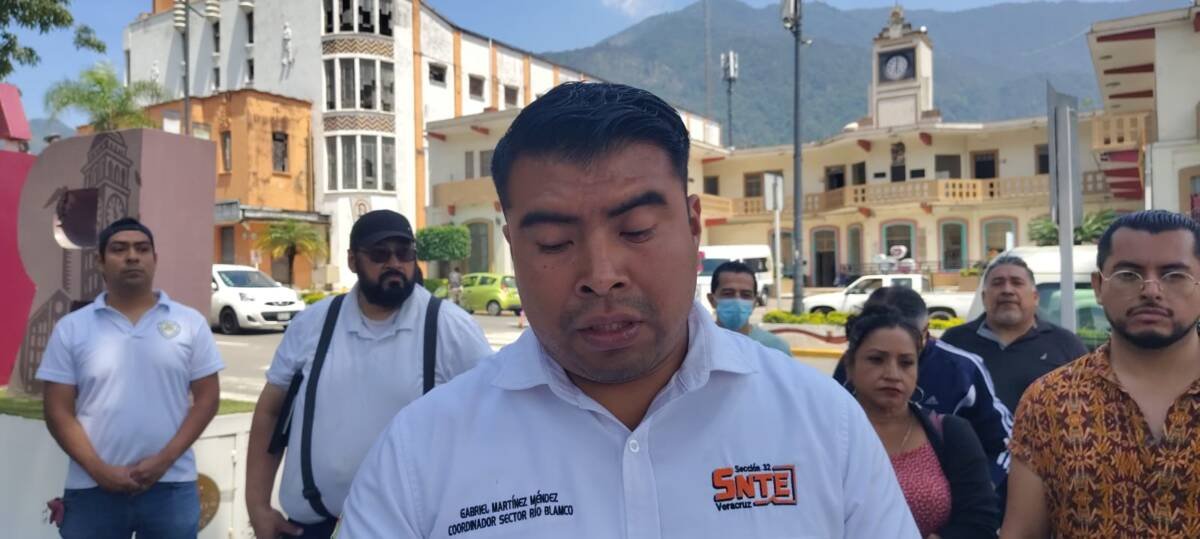 Río Blanco, Ver.- Docentes afiliados a la Sección 32 del Sindicato Nacional de Trabajadores de la Educación (SNTE) se manifestaron en Río Blanco para exigir a las autoridades estatales y federales el cumplimiento de sus derechos laborales, sumándose a las protestas realizadas en distintos puntos de Veracruz.