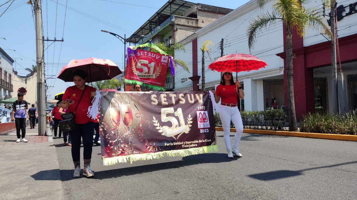 Orizaba, Ver.- Para celebrar los 51 años de su organización, integrantes del Sindicato Estatal de Trabajadores al Servicio de la Universidad Veracruzana (Setsuv) salieron la tarde de este viernes a marchar por las principales calles de la ciudad de Orizaba