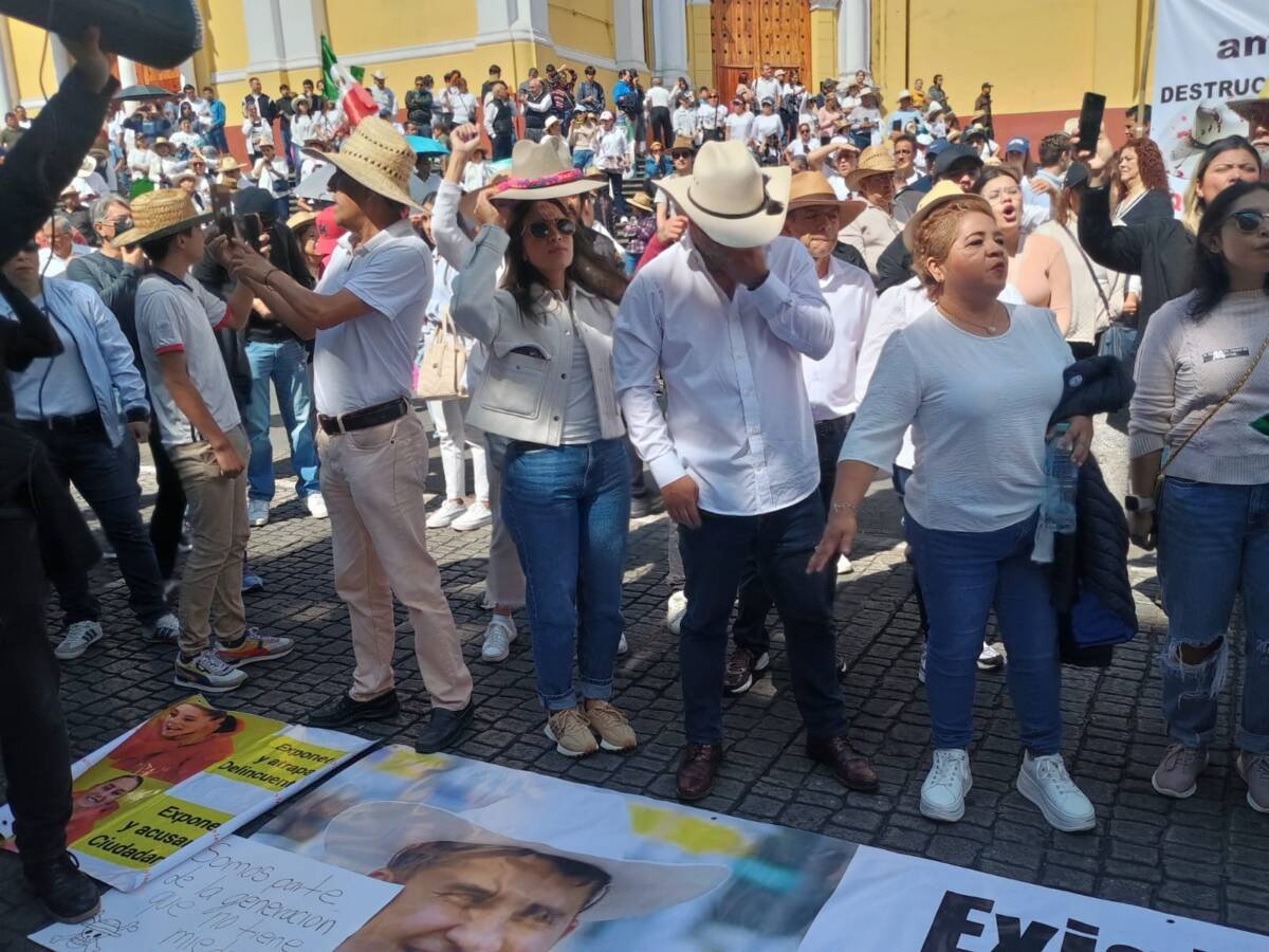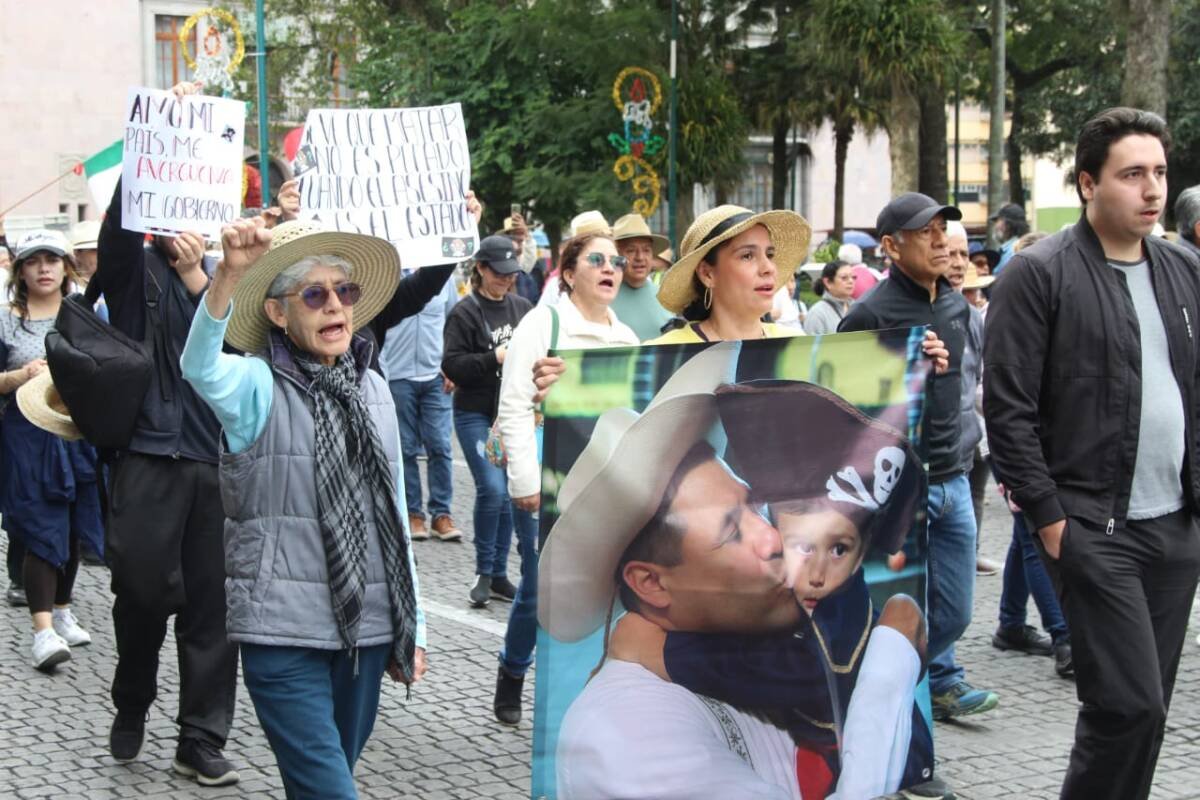 En Xalapa fueron cientos de personas, jóvenes, adultos y adultos mayores los que marcharon con pancartas y lonas realizando un plantón ante el palacio de gobierno donde exigieron la renuncia de la gobernadora Rocío Nahle y de la presidenta de México, Claudia Sheinbaum.