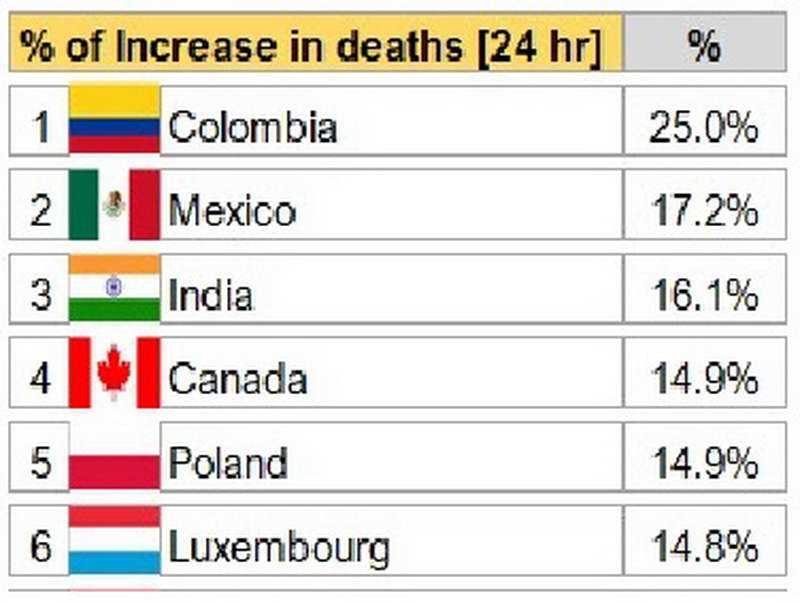 En el caso particular de México, los casos pasaron de 3844 a 4219 y el número de muertes de 233 a 273, es decir hubo 375 más personas diagnosticadas (1038 en 3 días) y 40 decesos (99 en los últimos 3 días)