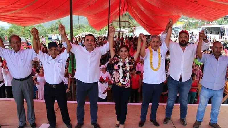 La candidata de la coalición PRI-Verde Ecologista, estuvo acompañada del candidato a la diputación federal plurinominal, Samuel Aguirre Ochoa; asi también el candidato a la diputación federal por el distrito 16, Juan Antonio Lavín Torres.
