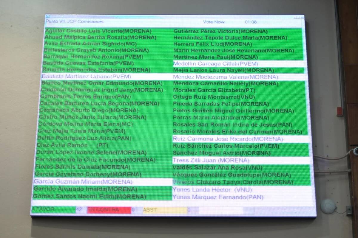 Se determinó también que la diputada Citlali Medellín Careaga ocupe la secretaría de la Comisión Permanente de Comunicaciones y la vocalía de la Comisión Permanente de Vigilancia. En tanto, se estableció que el diputado Felipe Pineda Barradas asuma la presidencia de la Comisión Permanente de Agua Potable y Saneamiento.