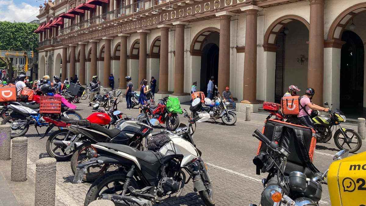 Xalapa Enríquez, Ver.- Ésta media tarde en el centro histórico de Xalapa, llegaron aproximadamente un poco más de 80 motociclistas todo repartidores de comida, de tortillas, de medicinas, a manifestar los improperios que reciben por parte de la autoridad en materia de seguridad pública.