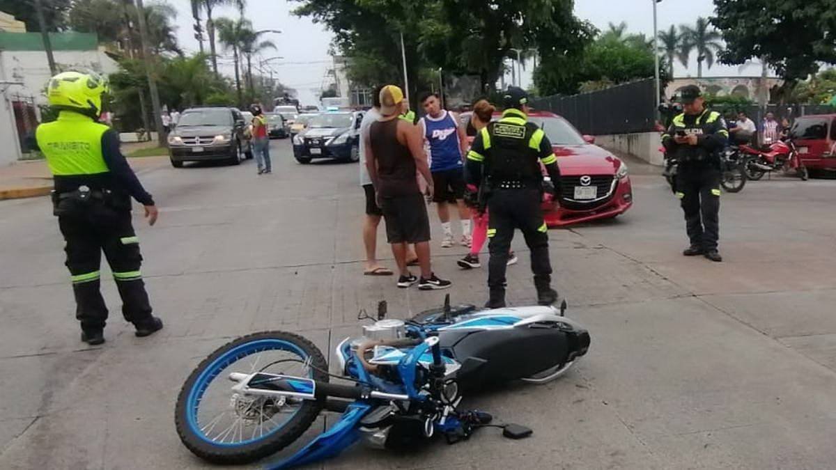 Córdoba, Ver.- La imprudencia de un motociclista provocó que resultara lesionado tras realizar un corte de circulación y chocar contra un vehículo Mazda, debido a que realizó un corte de circulación al momento de que ambas unidades circulaban sobre el bulevar Tratados de Córdoba a la altura de la avenida 13 frente al parque Quinto Centenario en la colonia Federal.