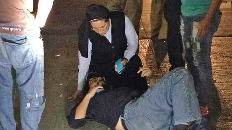Testigos del accidente solicitaron de inmediato la presencia de una ambulancia siendo paramédicos de Cruz Roja Córdoba quienes le dieron los primeros auxilios, en tanto que una monja intentaba ayudar al lesionado.