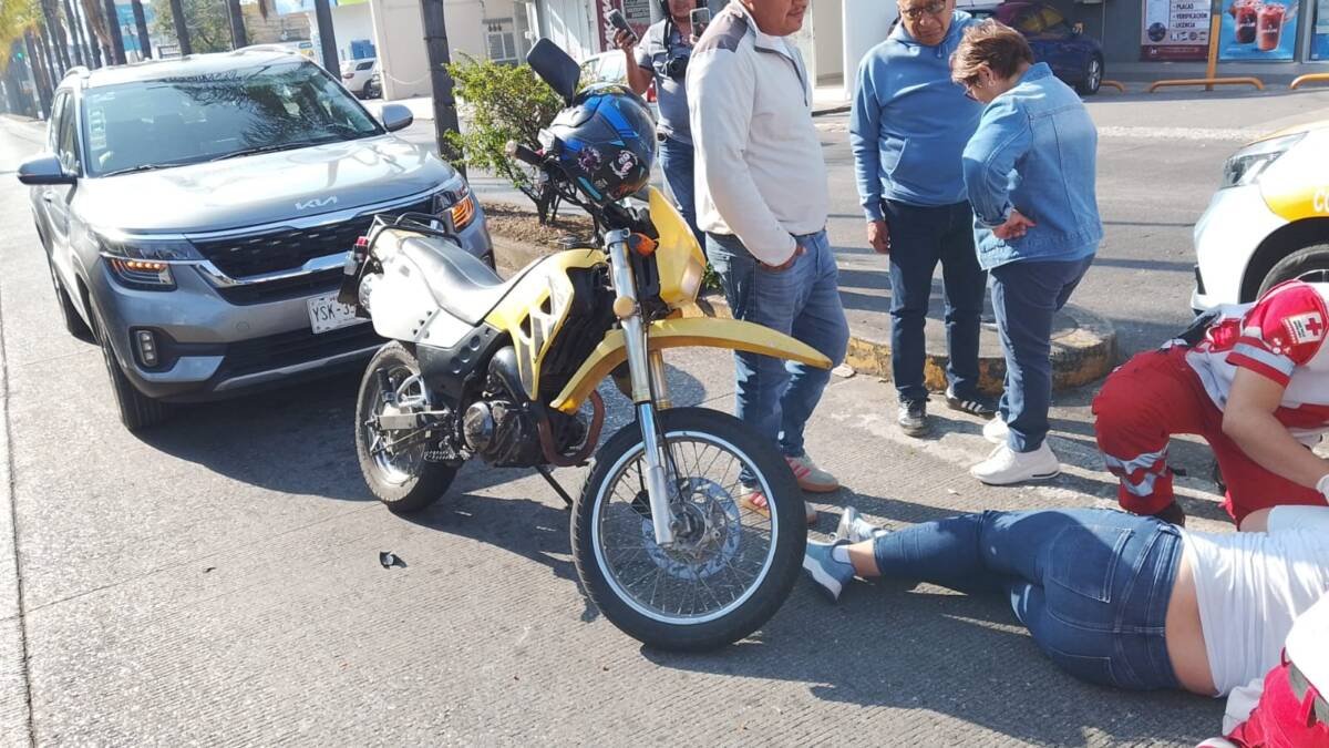 En ese momento, la motociclista intentó rebasar, pero al aproximarse demasiado al camellón central —donde se encuentran árboles ornamentales— habría impactado contra uno de ellos, lo que provocó que perdiera el control de la motocicleta y comenzara a derrapar sobre la carpeta asfáltica.