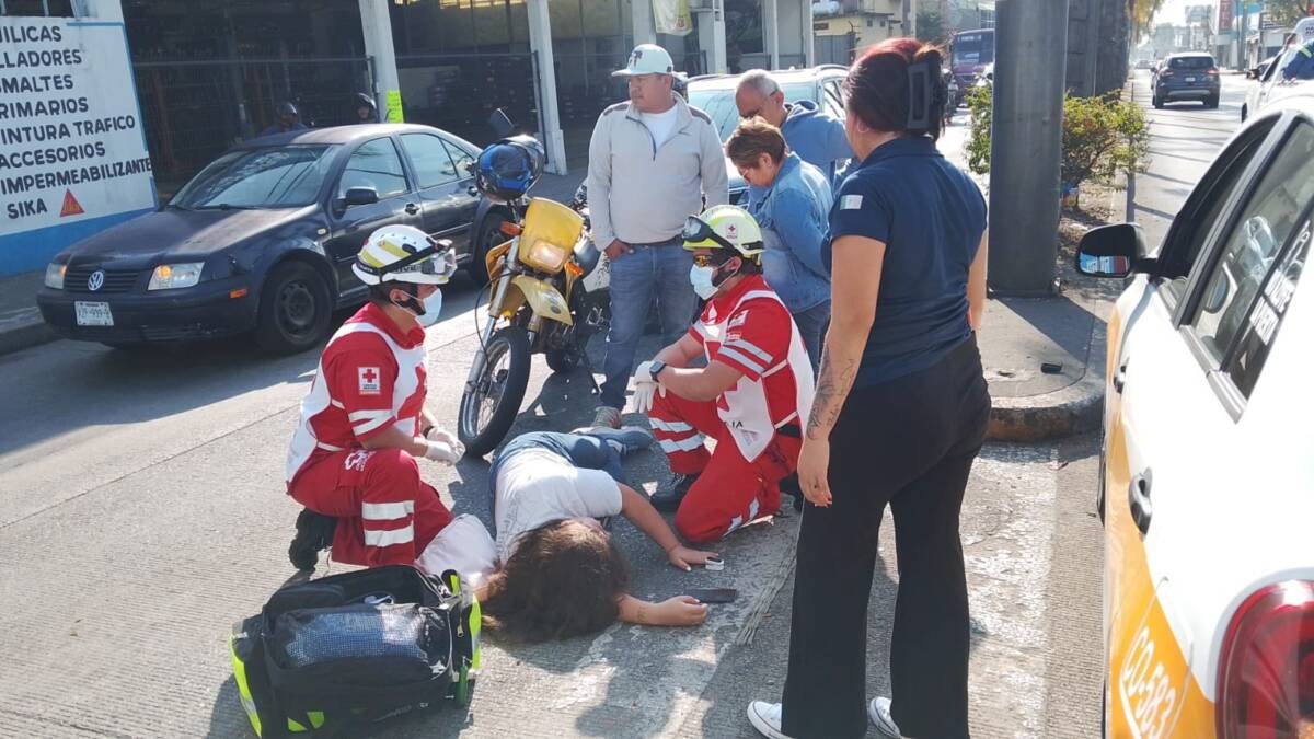 Paramédicos de la Cruz Roja acudieron al sitio para brindarle atención prehospitalaria y posteriormente la trasladaron a un hospital para valoración médica, debido a una lesión presentada en el brazo derecho.